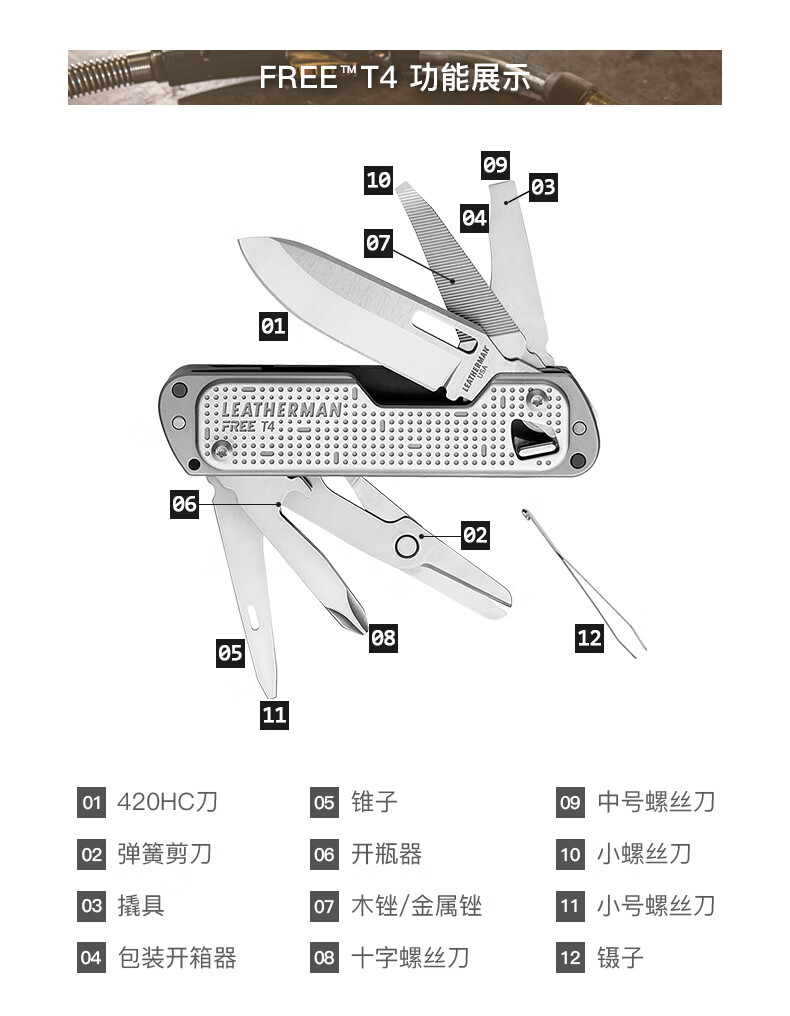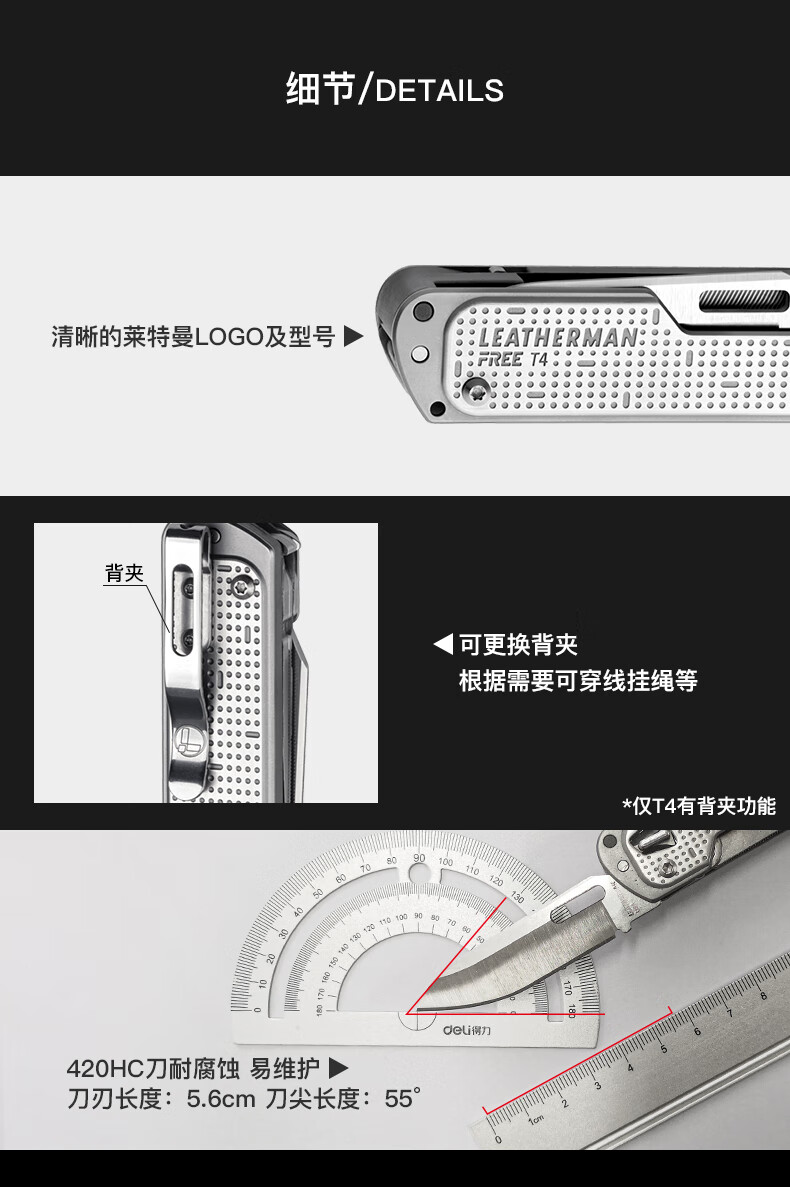 莱特曼Leatherman莱特曼FREE T4T2多功能组合工具刀磁性结构应急装备EDC T2银色【832682】