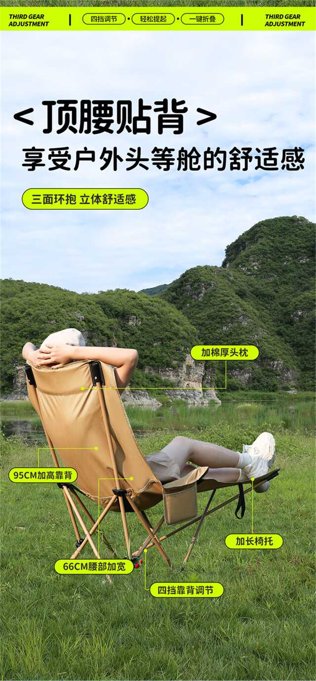 这款椅子真的超实用,四挡调节设计太贴心了,不管是坐着看书还是躺着晒太阳都很舒服。收纳起来也不占地方,带出去露营超方便。质量很扎实,用了这么久都没问题,性价比很高!