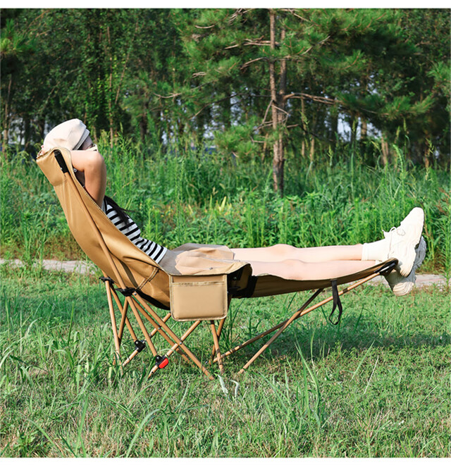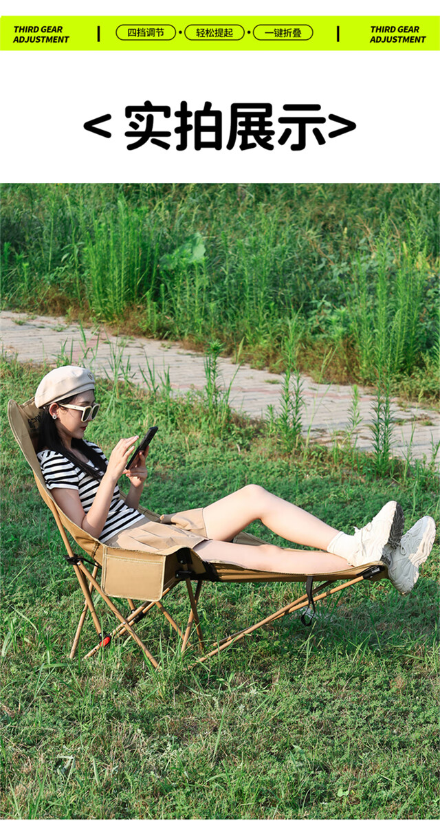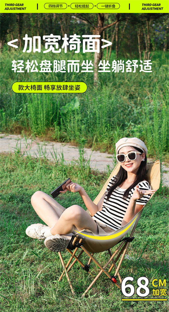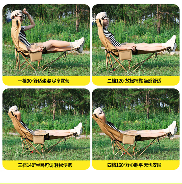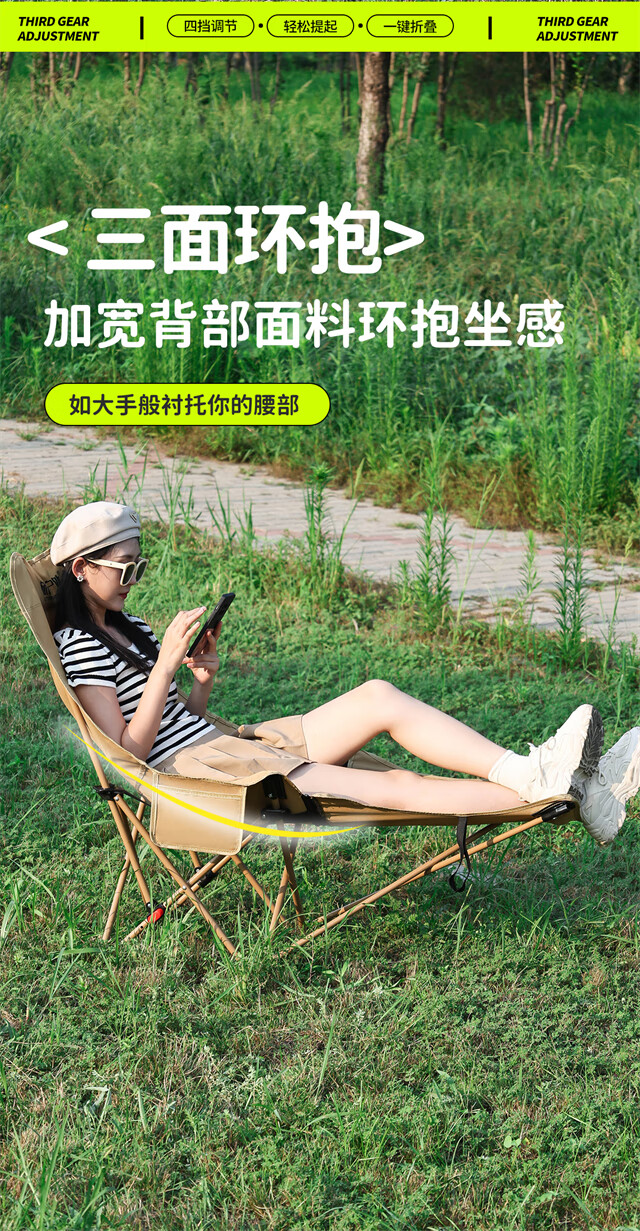四挡调节躺椅月亮椅便携式露营钓鱼凳子月亮椅写生椅 卡其色四挡调节月亮椅(送收纳袋)