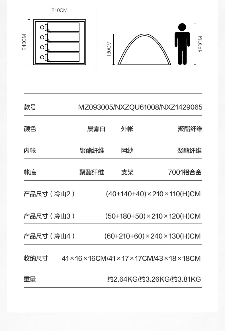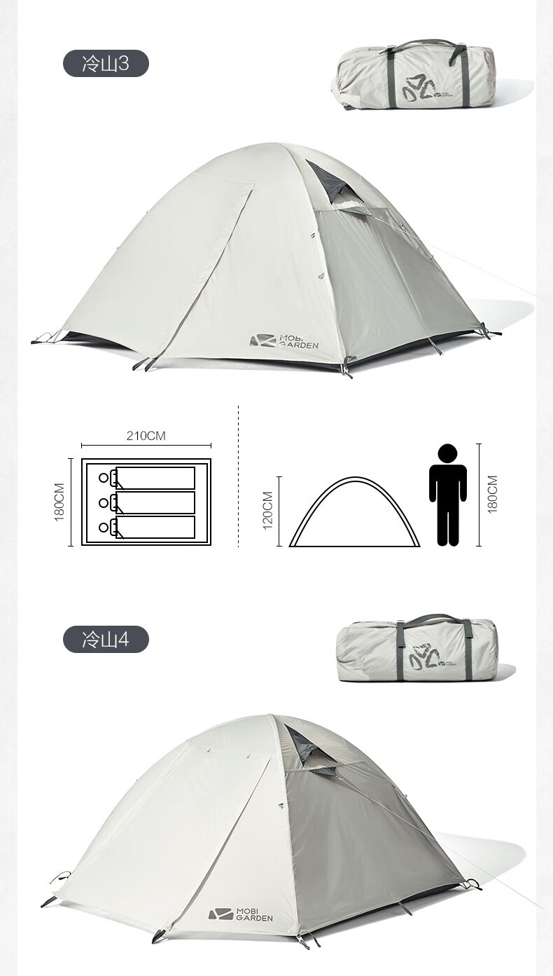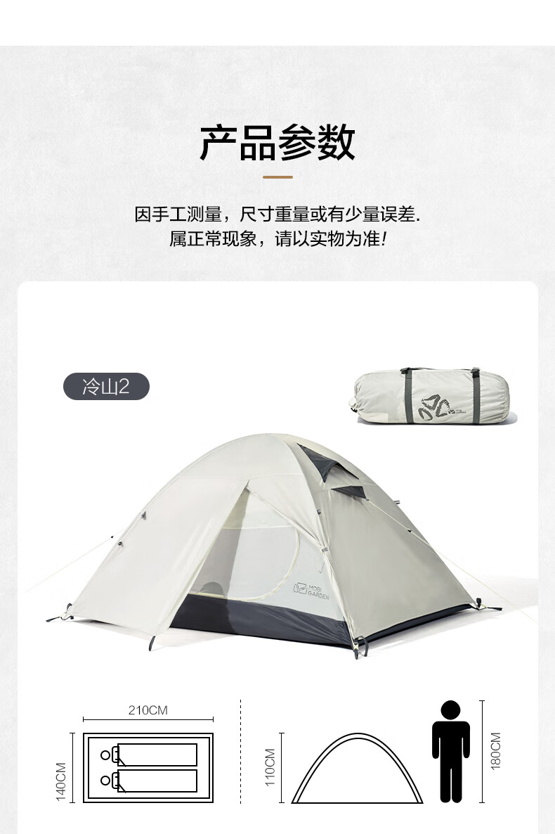 牧高笛冷山帐篷单双人帐篷户外露营徒步帐轻量化冷山1/2/3/4/冷山UL 【双人】冷山2 PLUS晨雾白