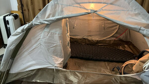 先说不足:快递袋子没有破损,帐篷袋子十分干净,但是外帐却有多处污渍(我用清洁湿巾擦了很久),还有一处像油点的东西擦不掉。我不知道是不是哪儿凑过来装进去的还是怎样,客服说是运输的问题,但是除了外帐其他都是干净的。 也许正如客服所说“不影响使用”,我也不想再计较这点东西,但总有种花钱买了个别人用过的感觉。 帐篷整体还是不错的,我也是挑了很久才选的这个帐篷