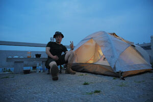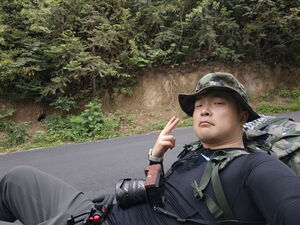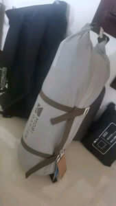 帐篷被折叠起来放在背后了,重量适中,感觉除了野外徒步,想平时的露营和公园活动也可以带上派上用场,两个人待着也不挤,打牌也适合
