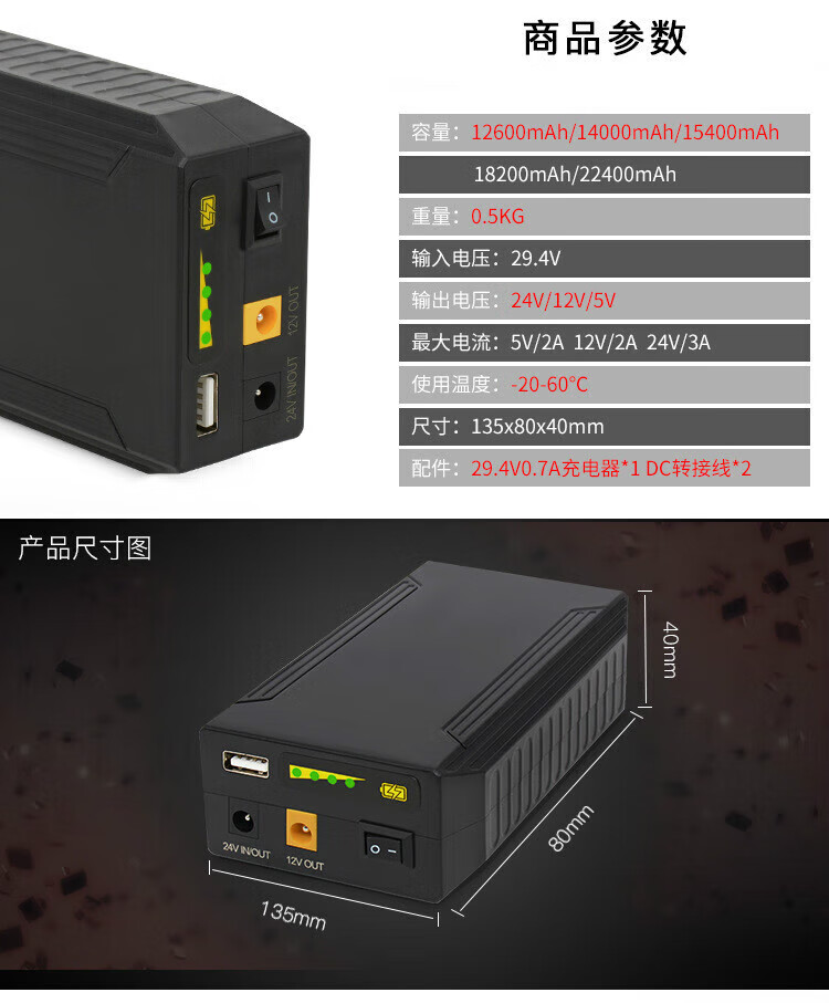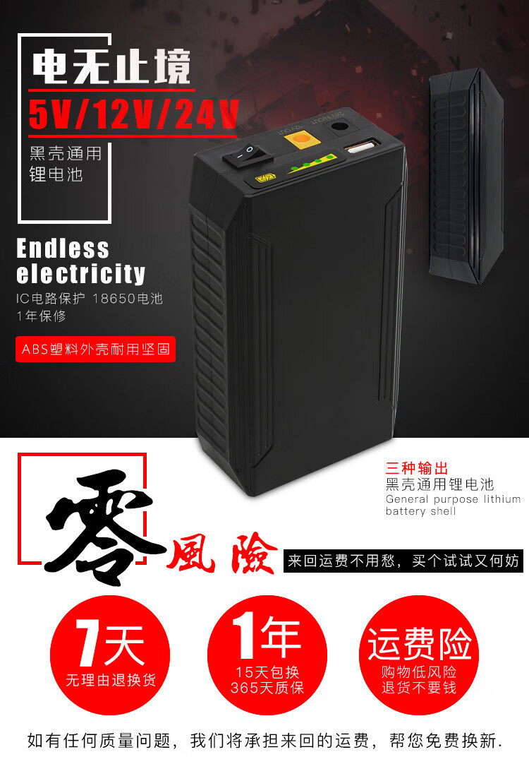 YI SEN NENG双DC24V12V5V三输出多功能锂电池组18650芯便携户外移动可充电源 22400毫安(带开关电显)+充电器+转接线