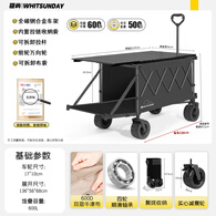 疆屿户外露营车便携折叠营地推车野营拉车摆摊快递拖车儿童可躺拉车 黑色聚拢越野推拉一体+碳钢桌面