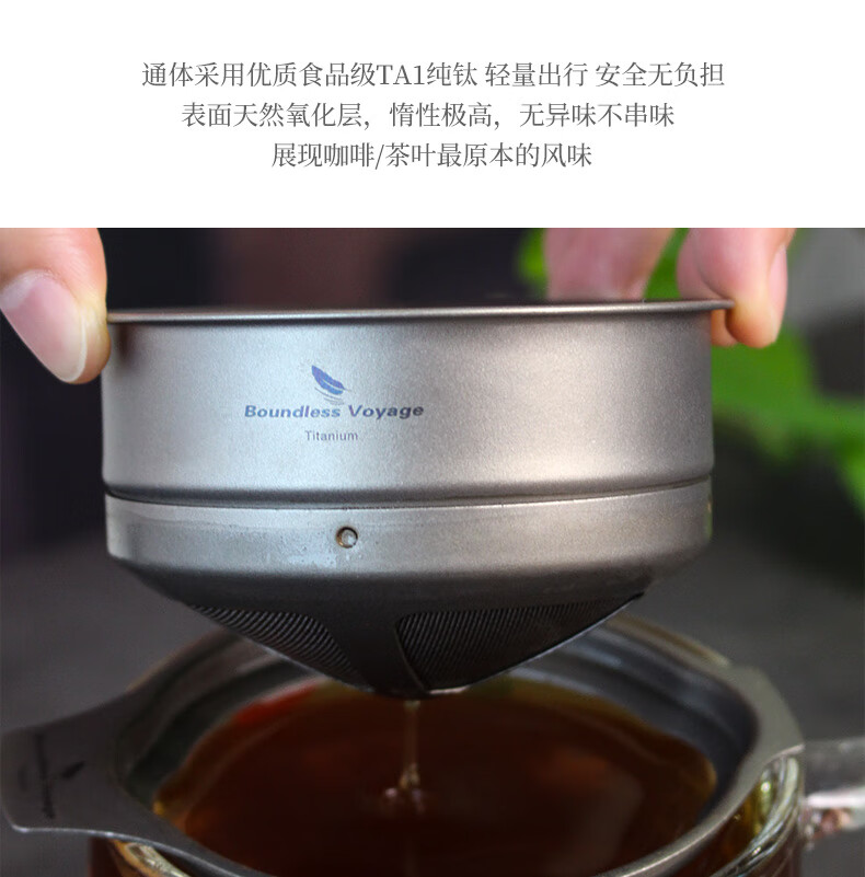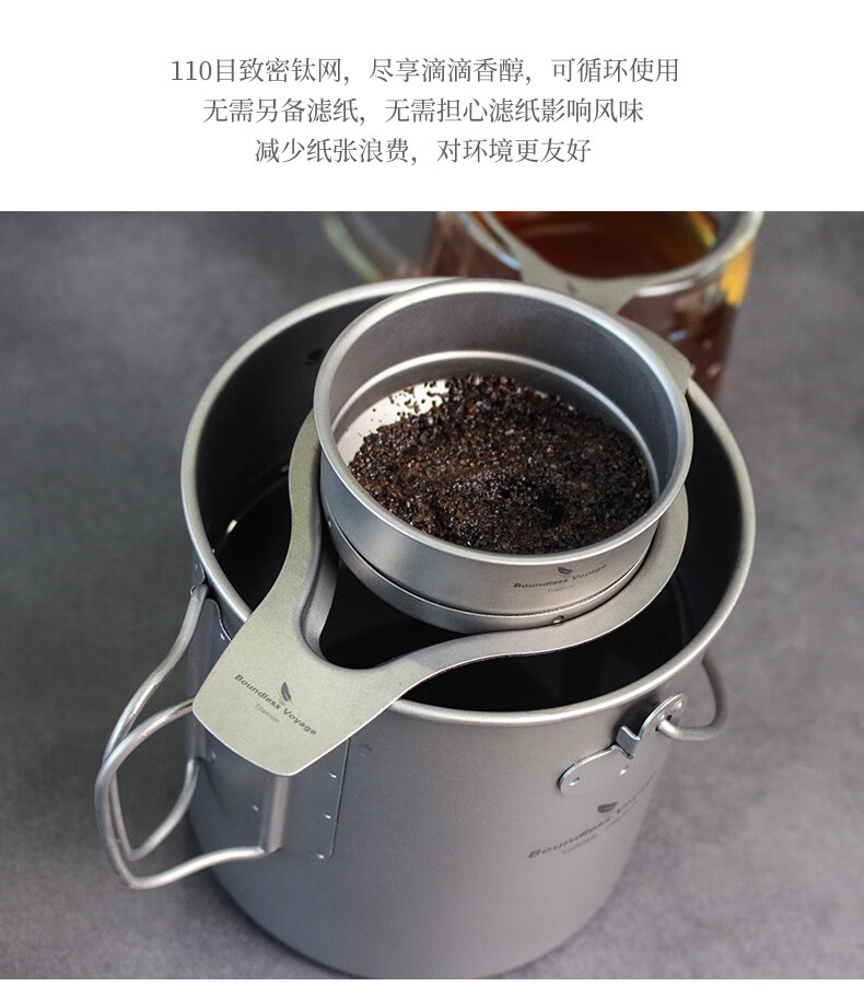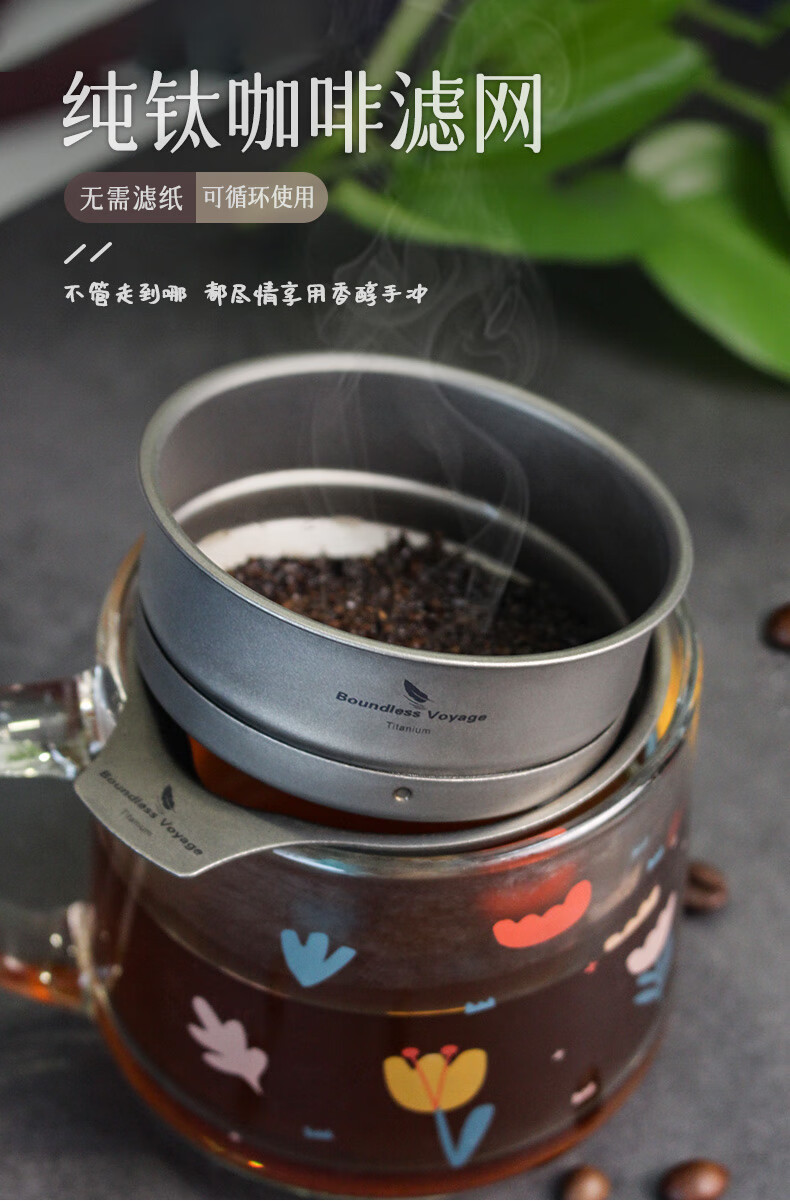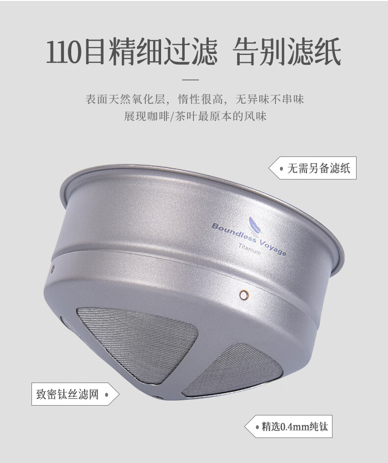 必唯(BOUNDLESS VOYAGE) 纯钛咖啡过滤网多用茶滤户外茶漏泡茶茶隔细密分体悬挂漏斗隔茶 Ti6001P (钛色)