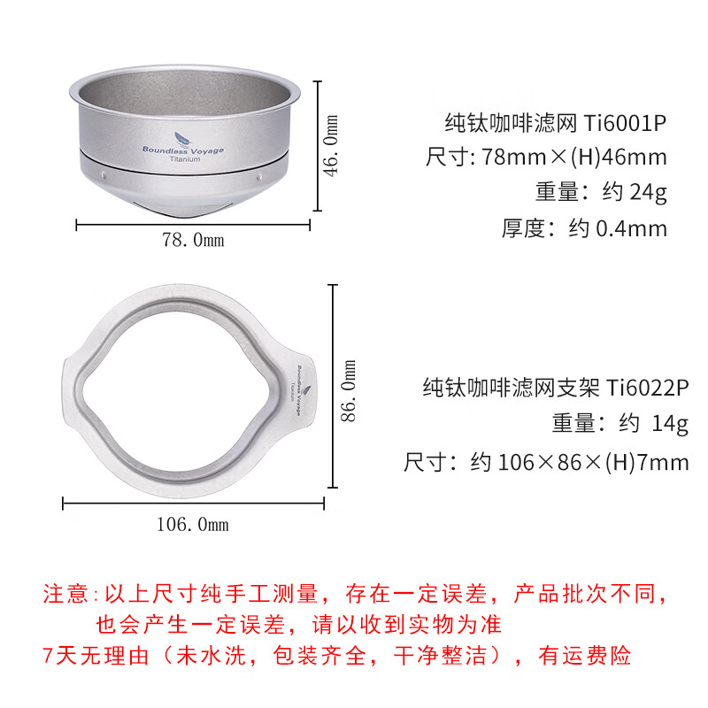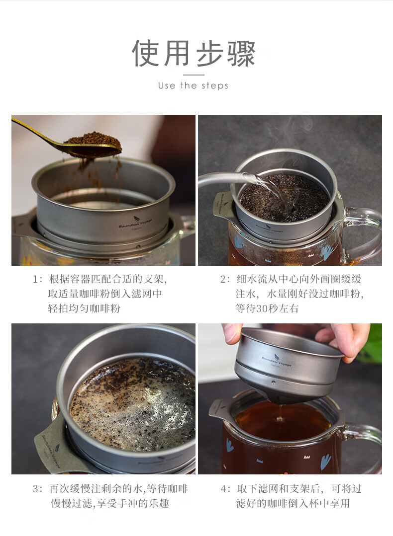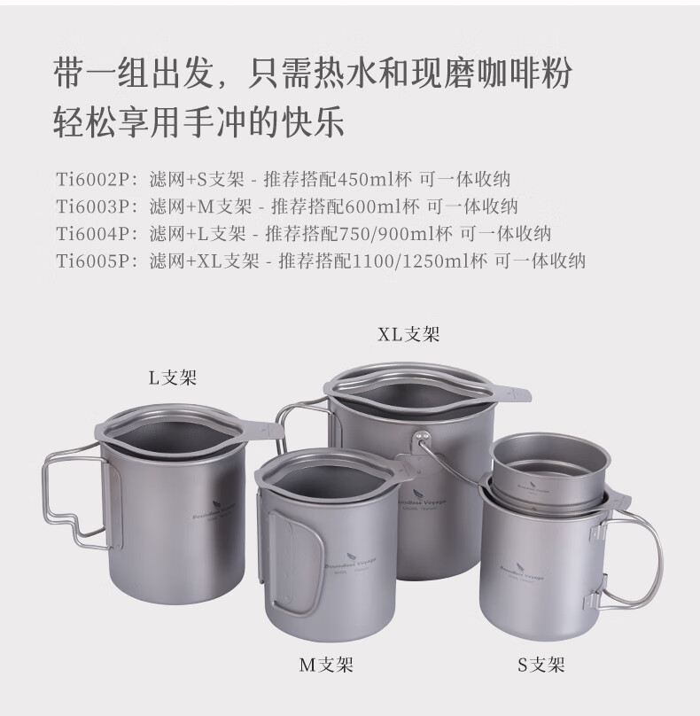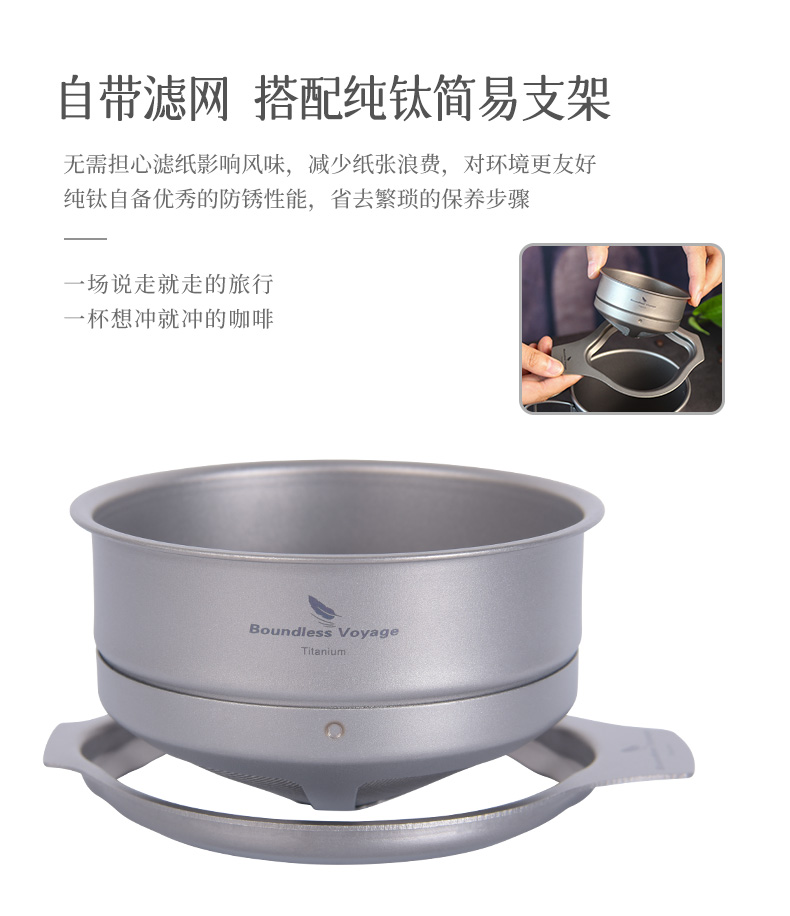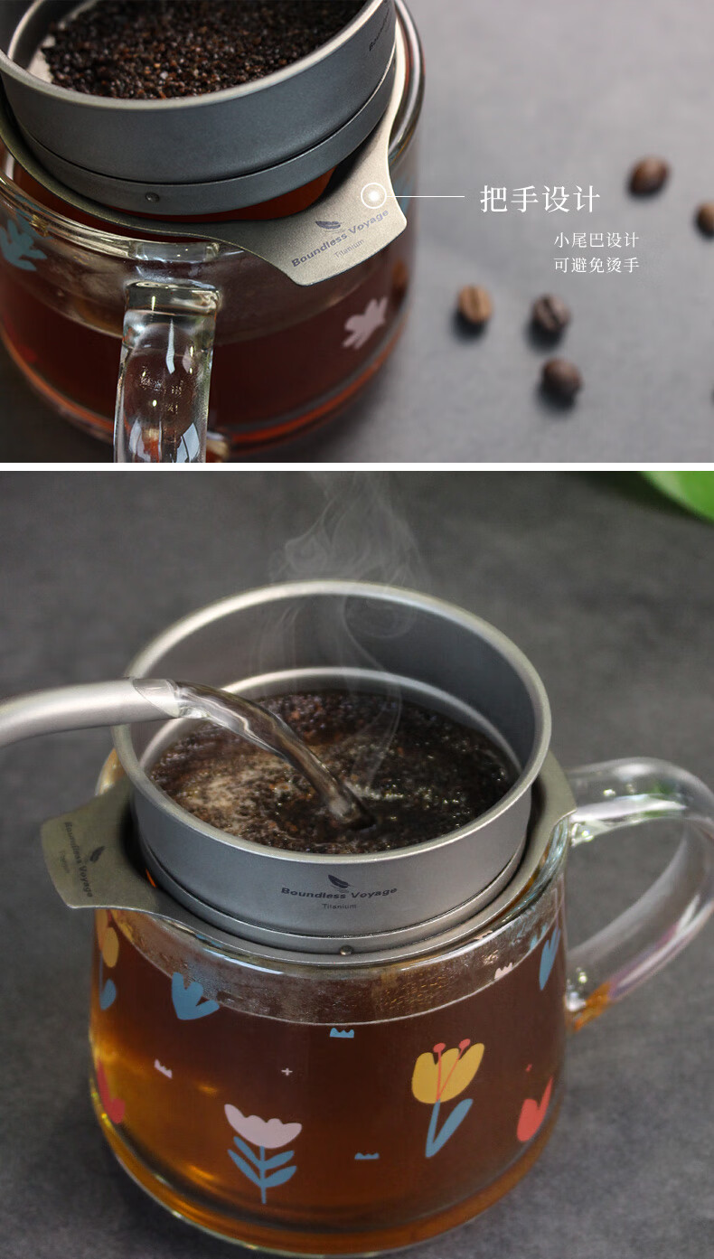 必唯(BOUNDLESS VOYAGE) 纯钛咖啡过滤网多用茶滤户外茶漏泡茶茶隔细密分体悬挂漏斗隔茶 Ti6001P (钛色)