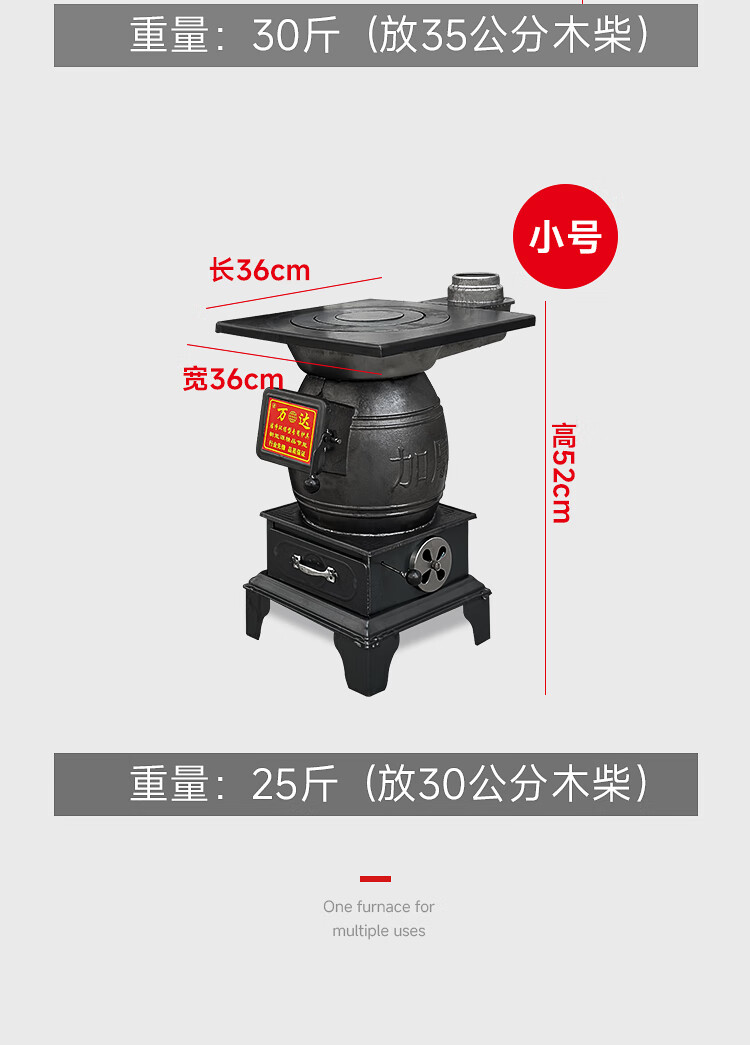 家里100平,特意买了个大号的,很不错,烧柴烧煤都可以,很暖和,而且屋里还没有烟