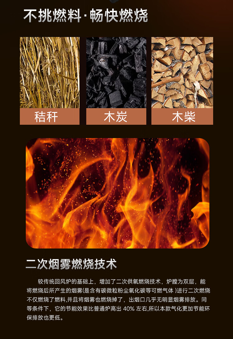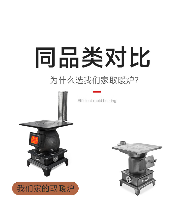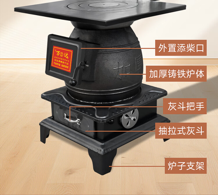 室内升温快,省柴 也不会把屋里弄得很脏 有接灰盒 很干净