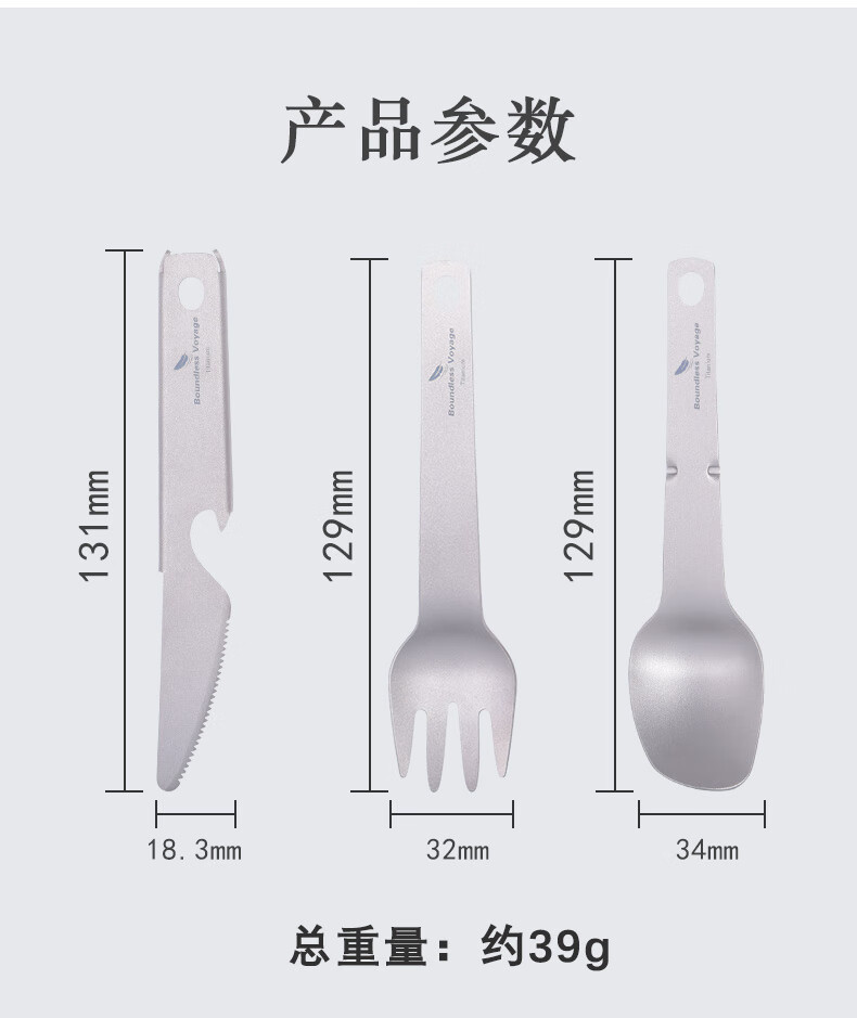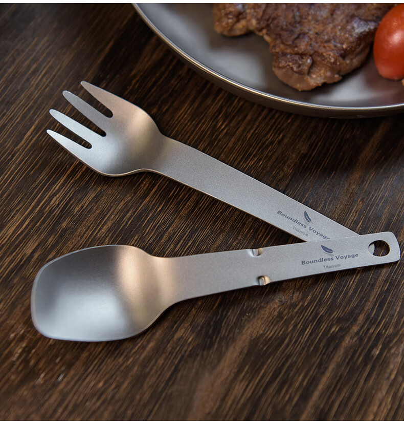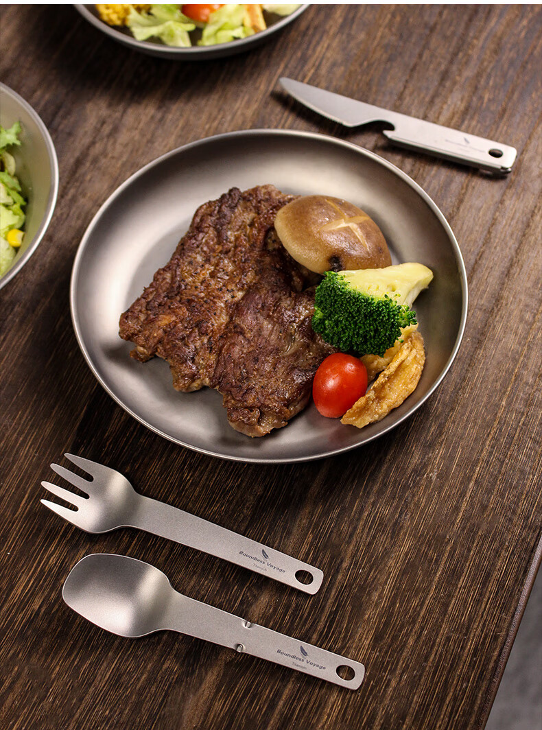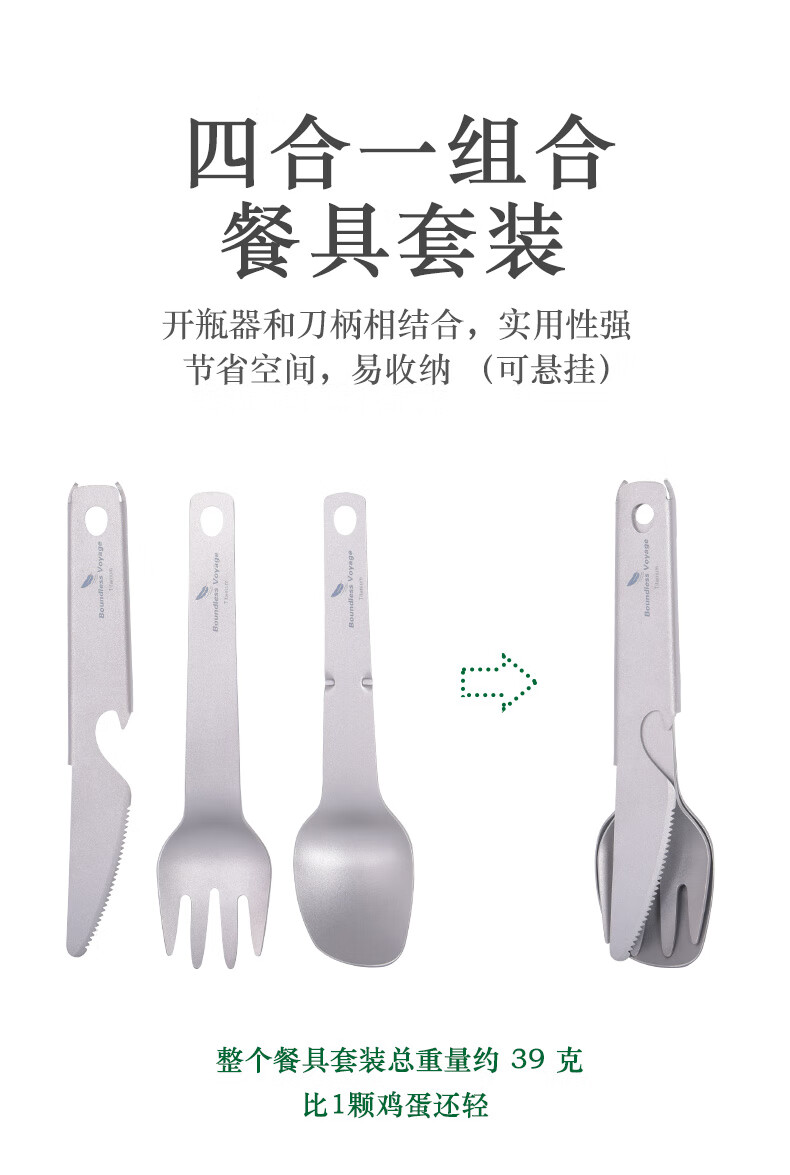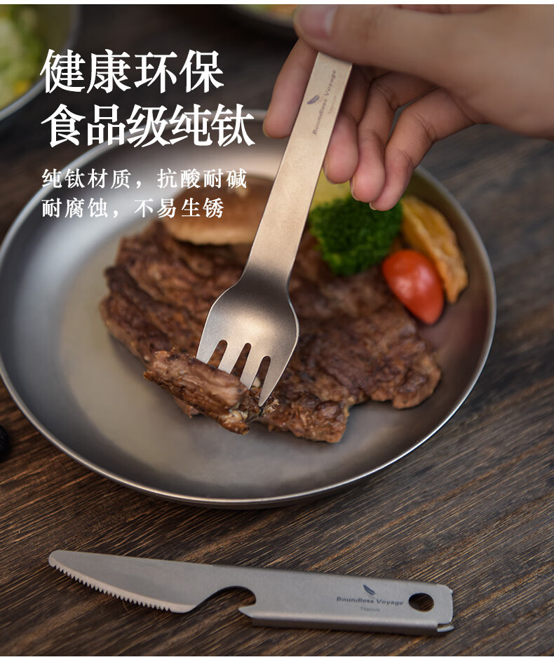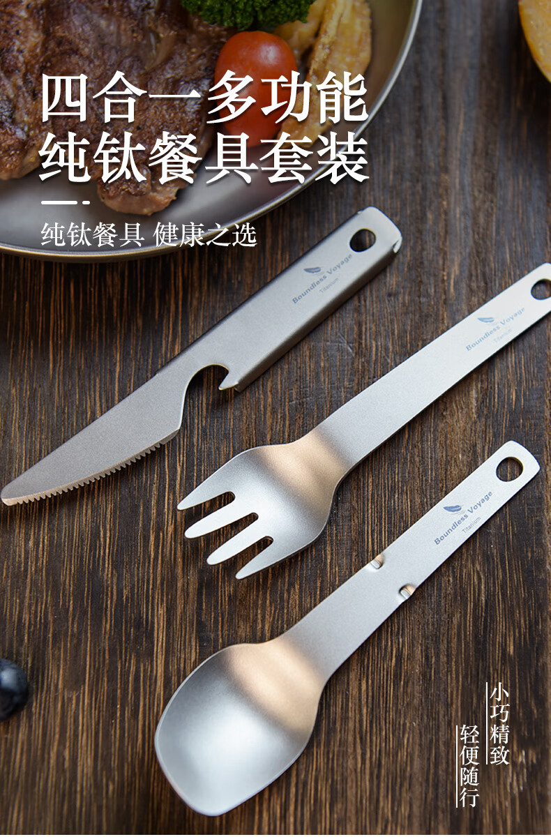 必唯(BOUNDLESS VOYAGE) 纯钛户外餐具轻量便携汤勺露营用品装备叉子野营餐刀开瓶器勺子