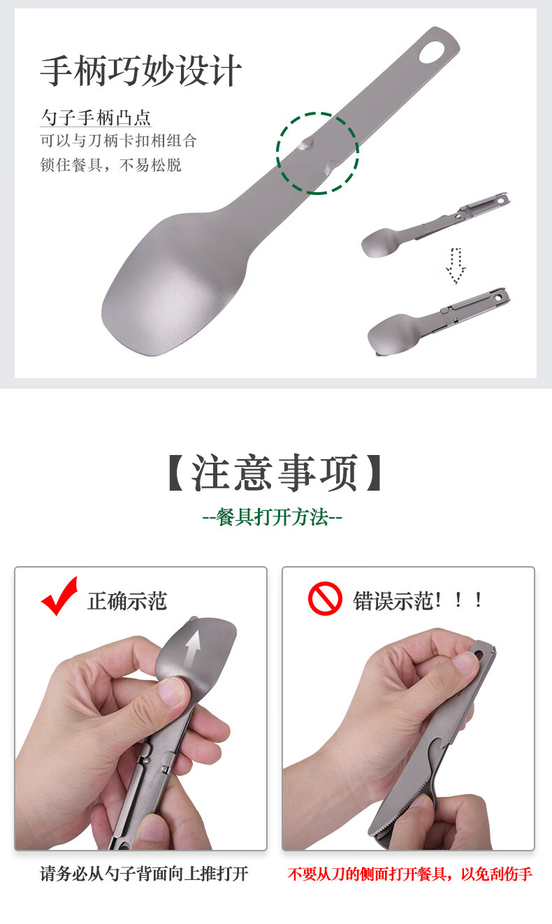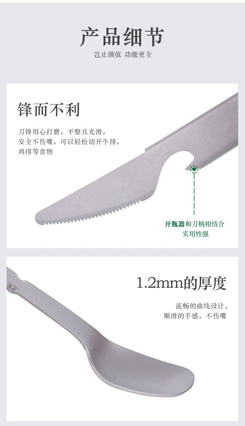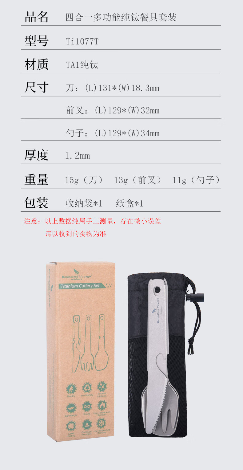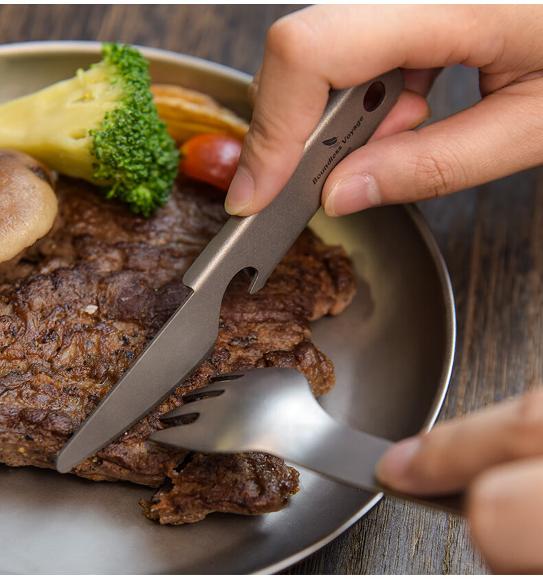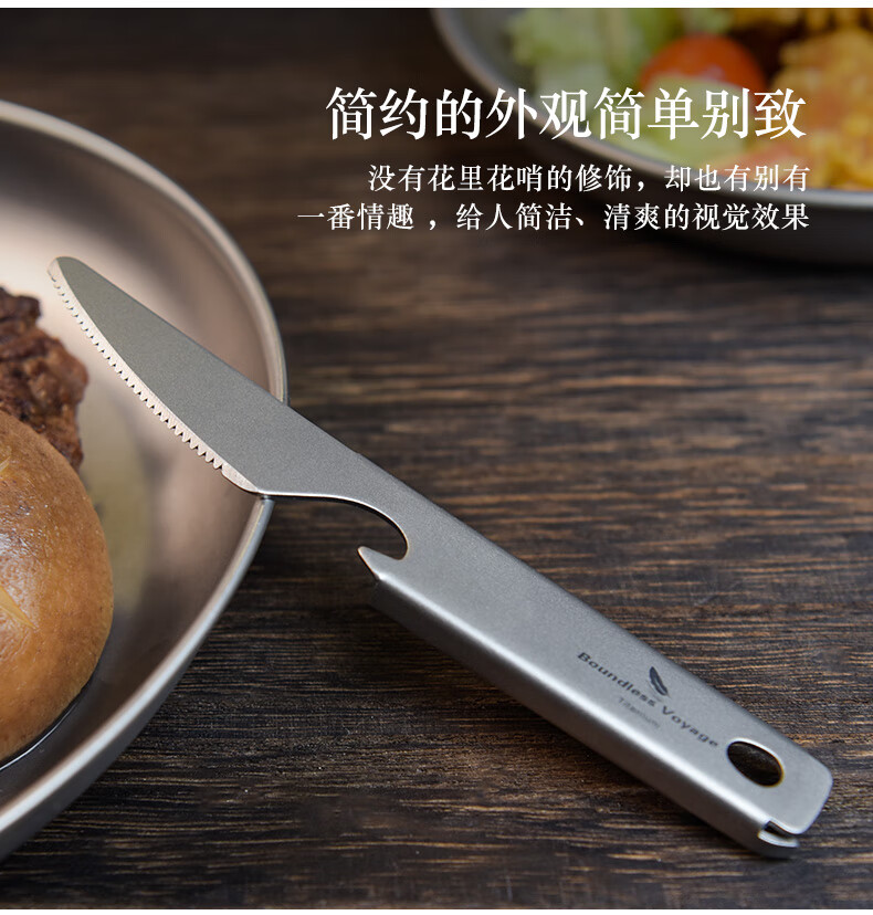 必唯(BOUNDLESS VOYAGE) 纯钛户外餐具轻量便携汤勺露营用品装备叉子野营餐刀开瓶器勺子