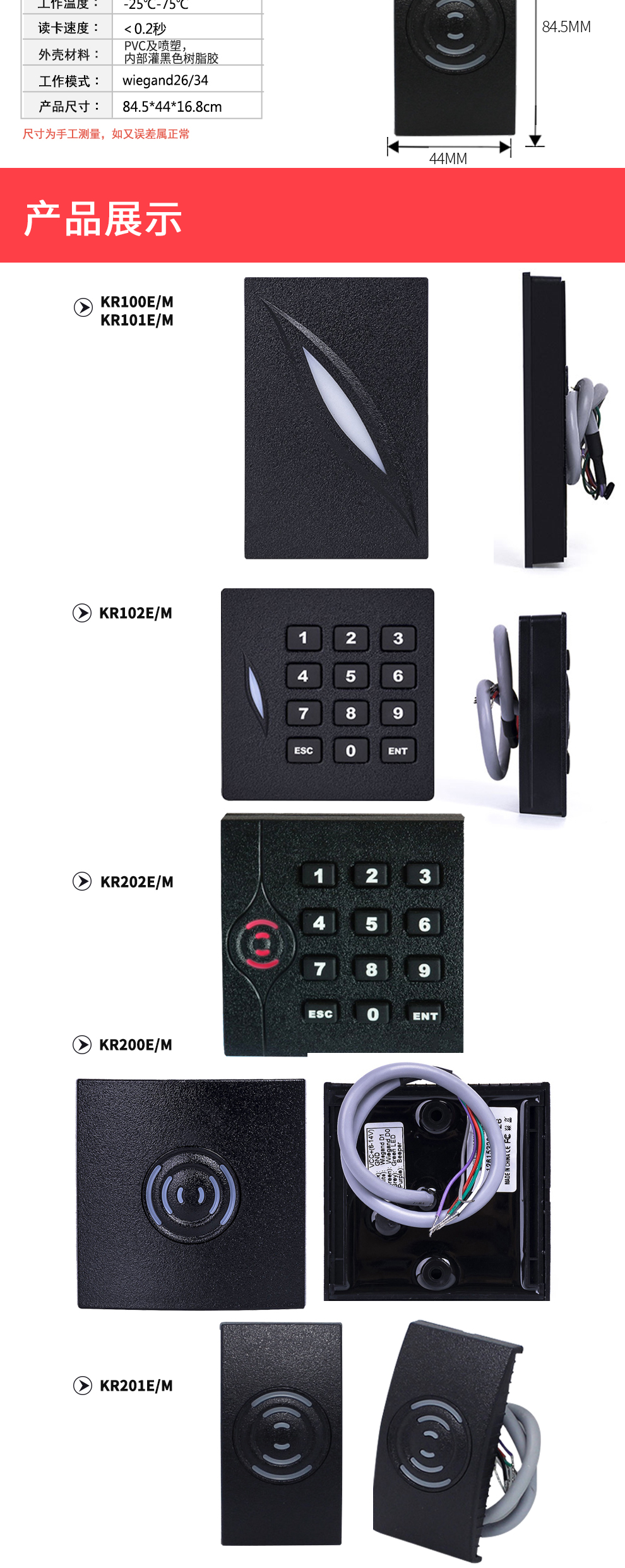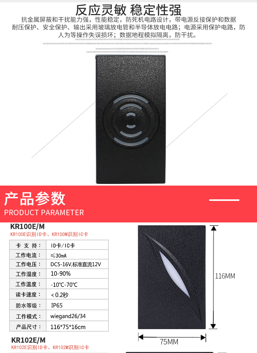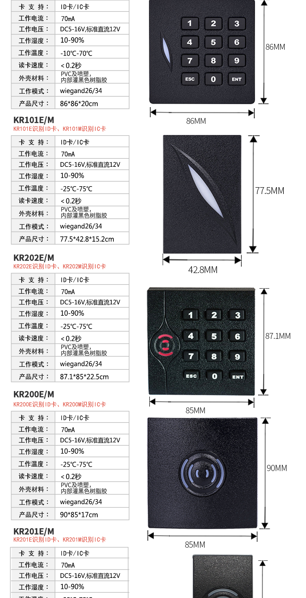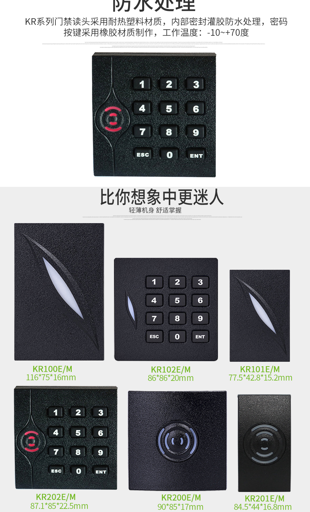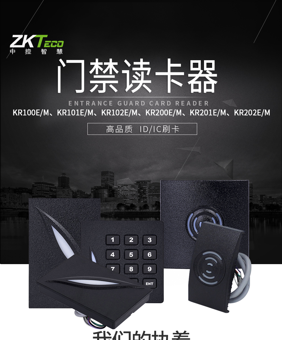 熵基科技(ZKTeco)刷卡门禁读头IC/ID卡 KR201E/KR100E/KR202M读卡器 KR101M-IC读头