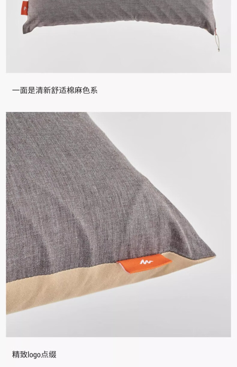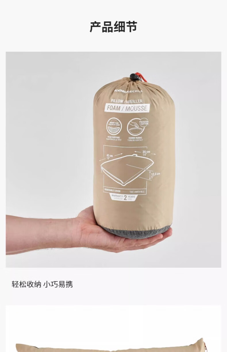 迪卡侬露营枕头舒适柔软单人枕易收纳枕头单人睡觉枕头ODC 记忆棉露营枕非充气-奶茶色