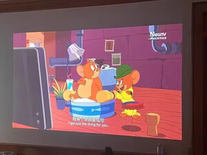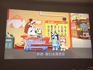 像在电影院看电影的一样,画质分辨率也是比较高的呢,看得比较清楚,最重要的就是能投出这么大的屏幕,比电视屏幕还看,这还是没有上幕布的效果都有这么好,已经达到心里的预期了,物超所值