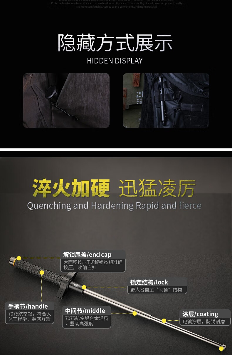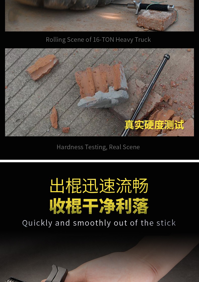 野人谷甩棍战术打狗棒棍【挡护实心】电镀淬火加硬防身甩棒铁棒车载格挡 21寸【挡护】黑色伸开52CM--淬火过可碎砖