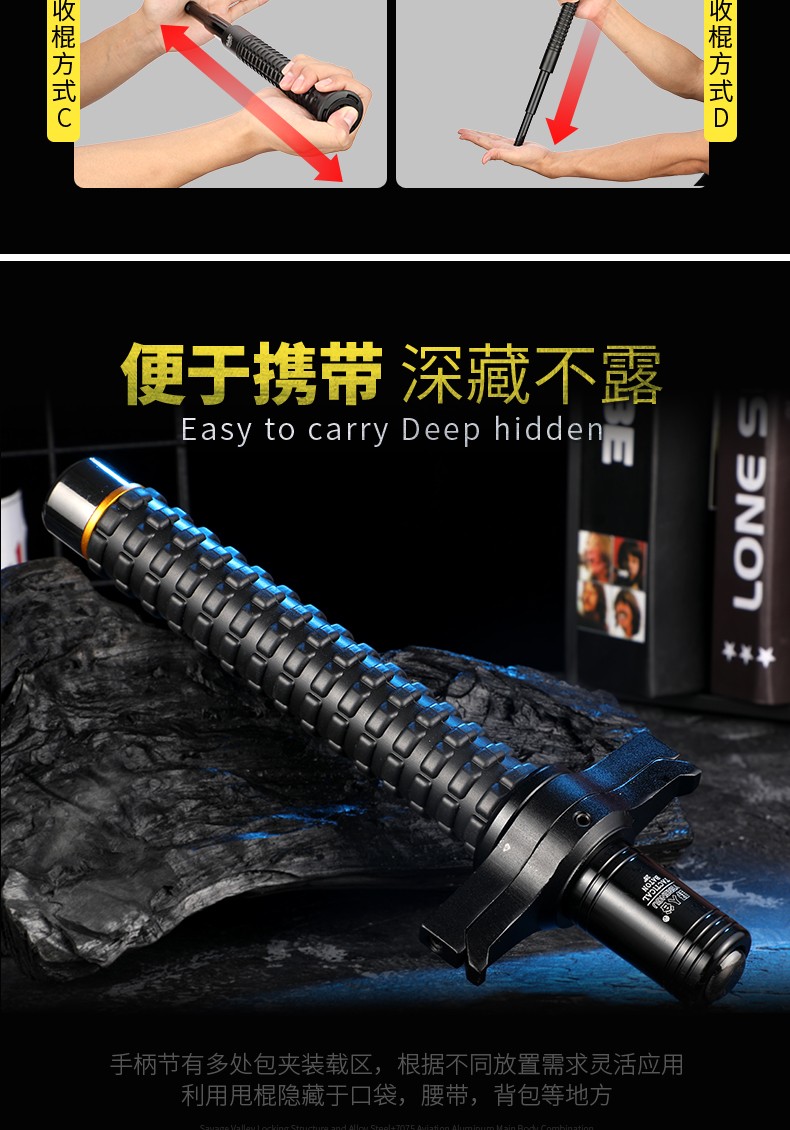 哥尔姆防身登山杖 机械甩棍 户外折叠伸缩手杖 拐杖 打狗棍棒 防身手杖
