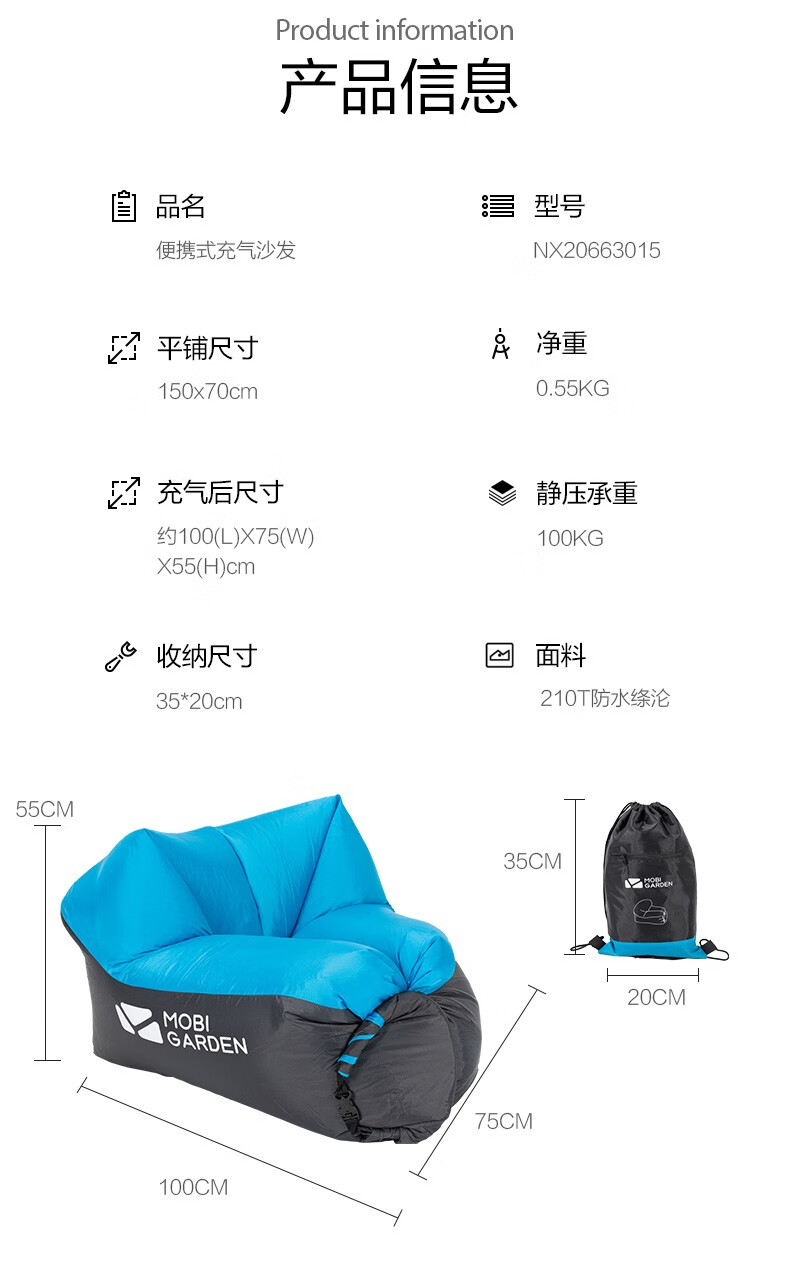 一直用牧高笛的户外产品,趁618把这款充气沙发带回家,目前还没使用,但有一说一,这个收纳后的尺寸可比所有折叠椅都要袖珍轻巧得多!