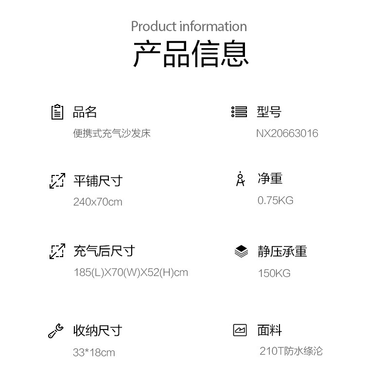 牧高笛(MOBIGARDEN) 户外露营超轻空气沙发床午休沙滩便携懒人充气沙发充气床 云舒充气床NX20663018