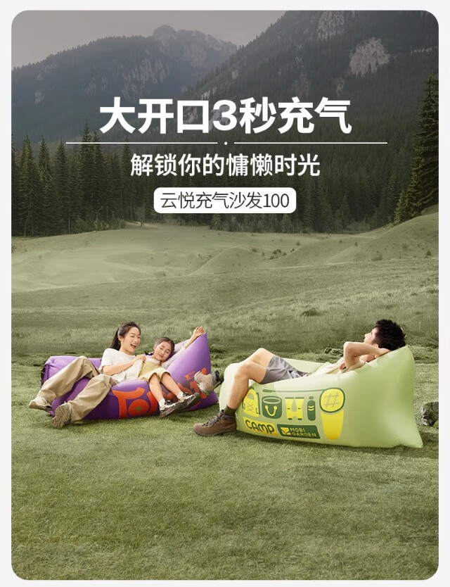 牧高笛的这个沙发啊,远比那些充气的要强多了,这种,其实也没有那么难冲。事实上这个的舒适感贴服感比那种电动充气的还是要舒服很多。