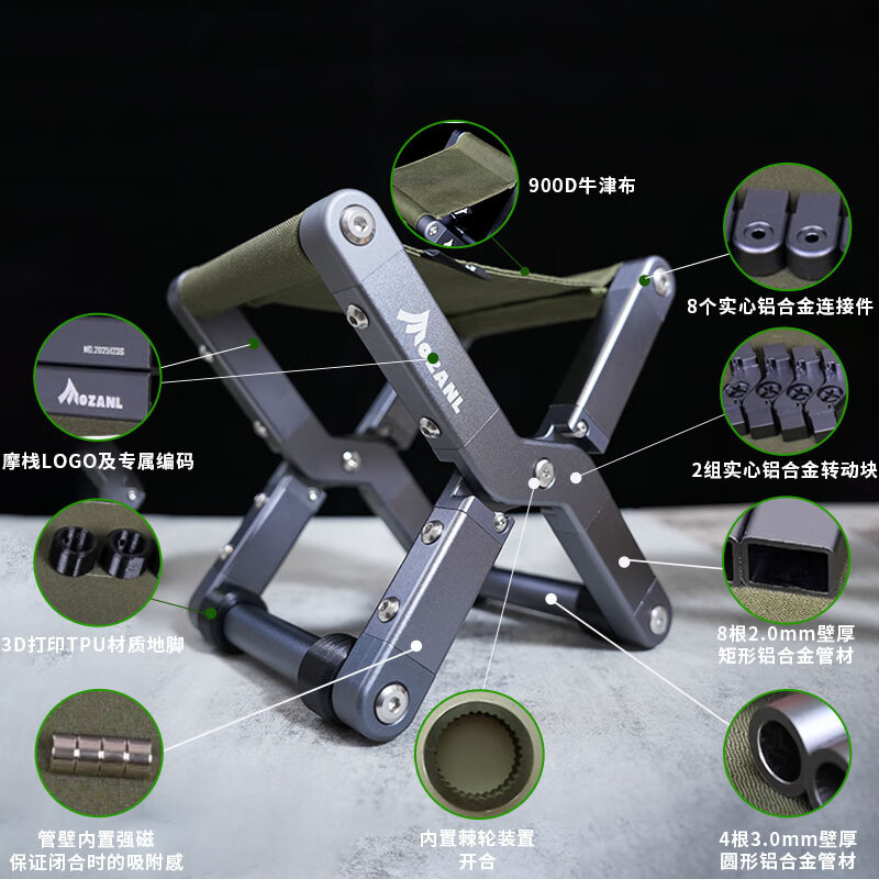 摩栈(MOZANL)溢彩马扎:多彩色铝镁合金折叠凳家居凳矮凳可替换座面自重轻 溢彩(森林绿色)