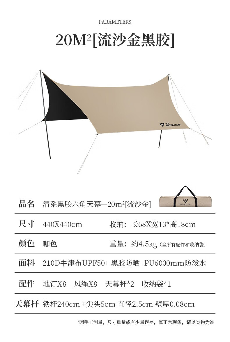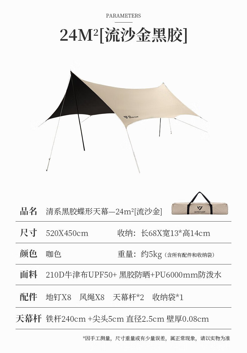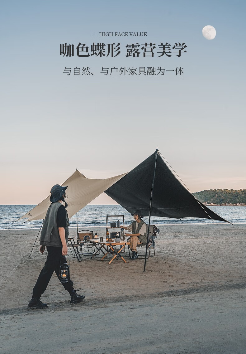 清系 黑胶天幕户外遮阳棚防雨加强防晒沙滩超大露营凉棚雨棚蝶形帐篷 24平方米【流沙金黑胶】多人聚会