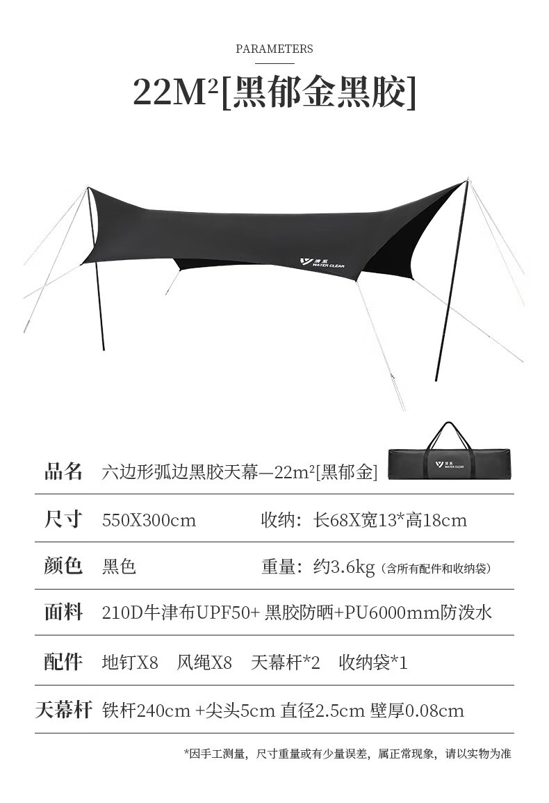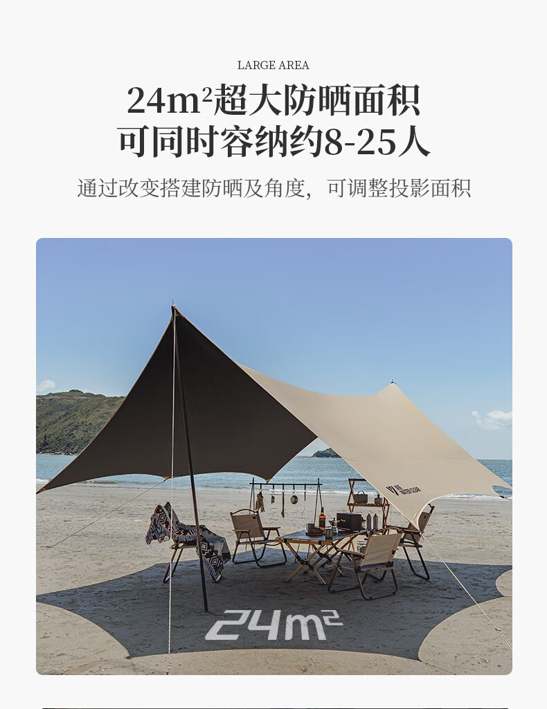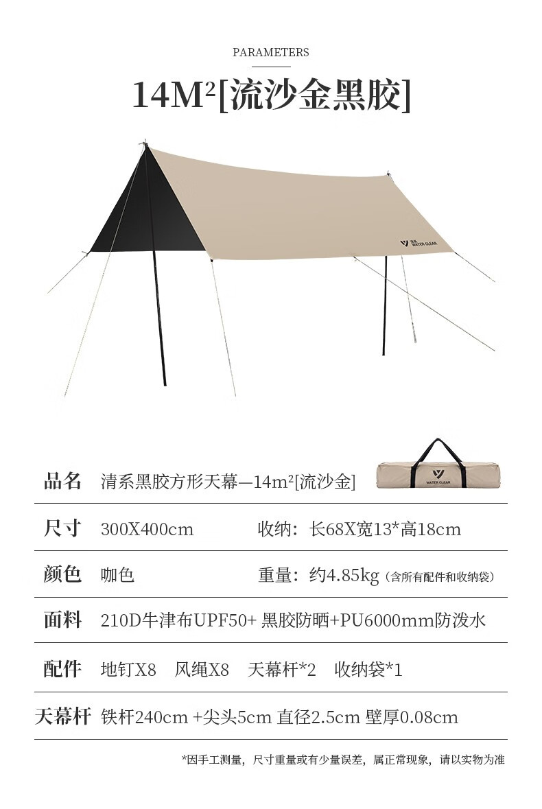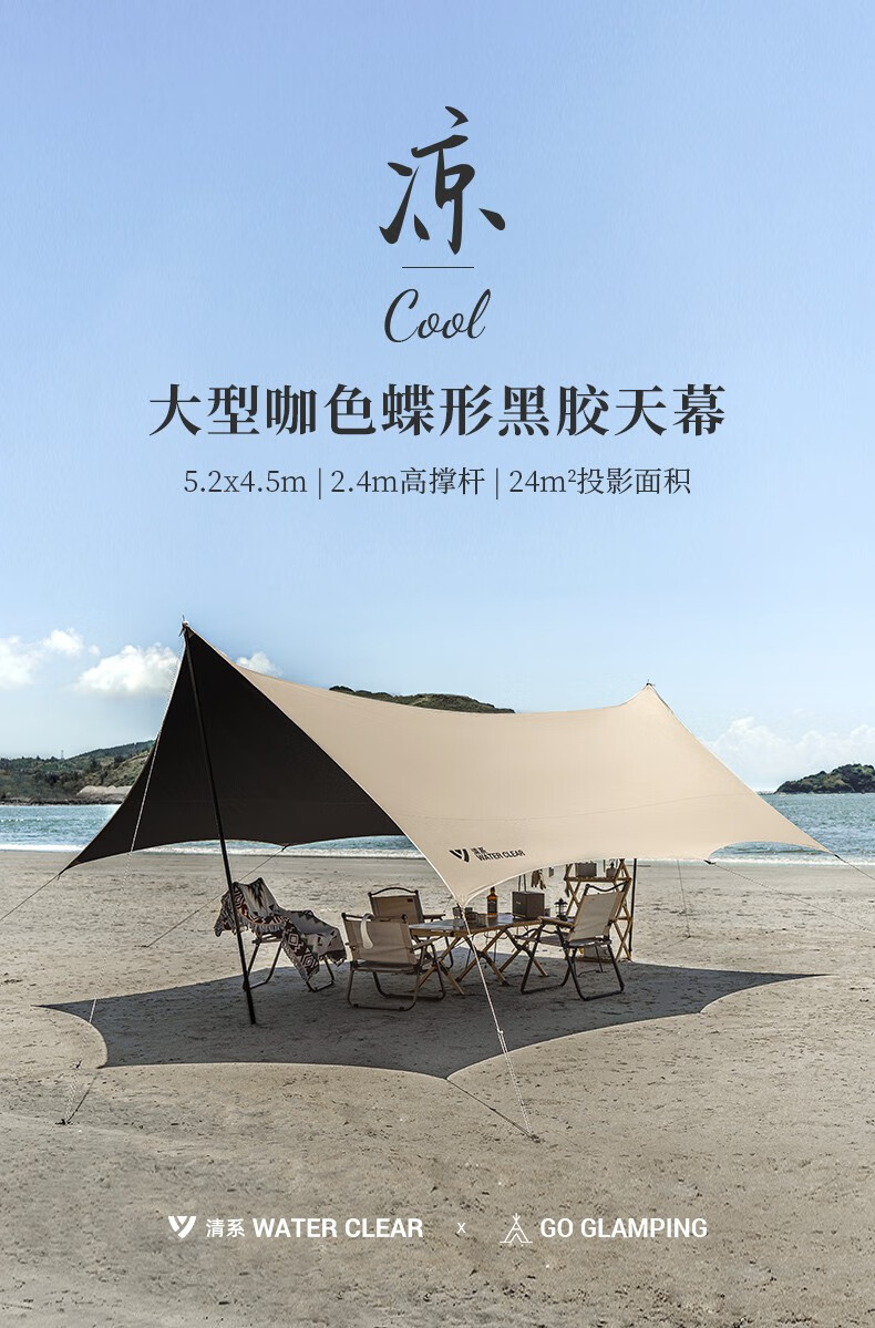 清系 黑胶天幕户外遮阳棚防雨加强防晒沙滩超大露营凉棚雨棚蝶形帐篷 24平方米【流沙金黑胶】多人聚会