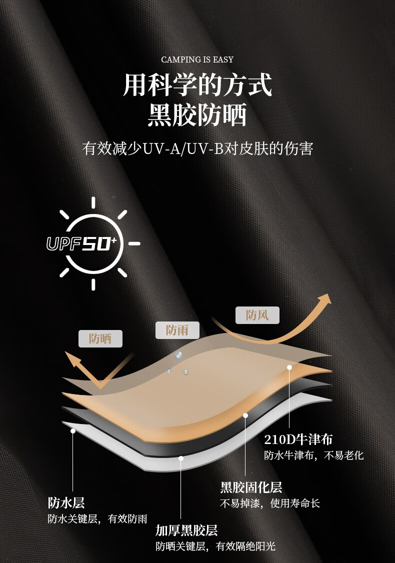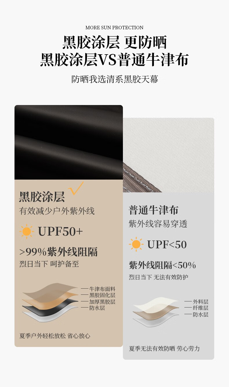 天幕薄了或者涂层材料不行,防晒效果低于预期,感觉基本不防晒。椅子较小,坐进去偏矮。产品都能用,手感都是偏单薄,这个价位,入门级的产品吧,可以凑合着用。