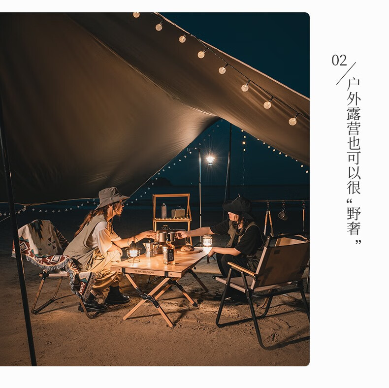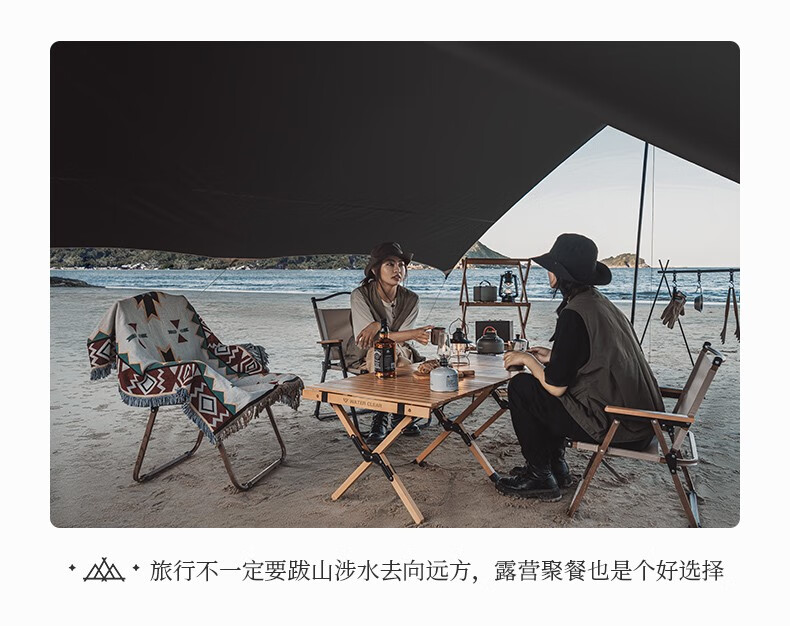 清系便携式露营桌子野餐可折叠克米特椅野营用品装备户外折叠桌蛋卷桌 桃木色中号60款