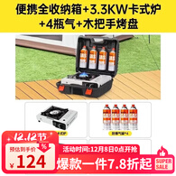 清系卡式炉户外野外炉具炊具便携式卡磁瓦斯炉火锅燃气罐炉煤气灶套盒 炉+4气+便携全收纳箱+木把手烤盘