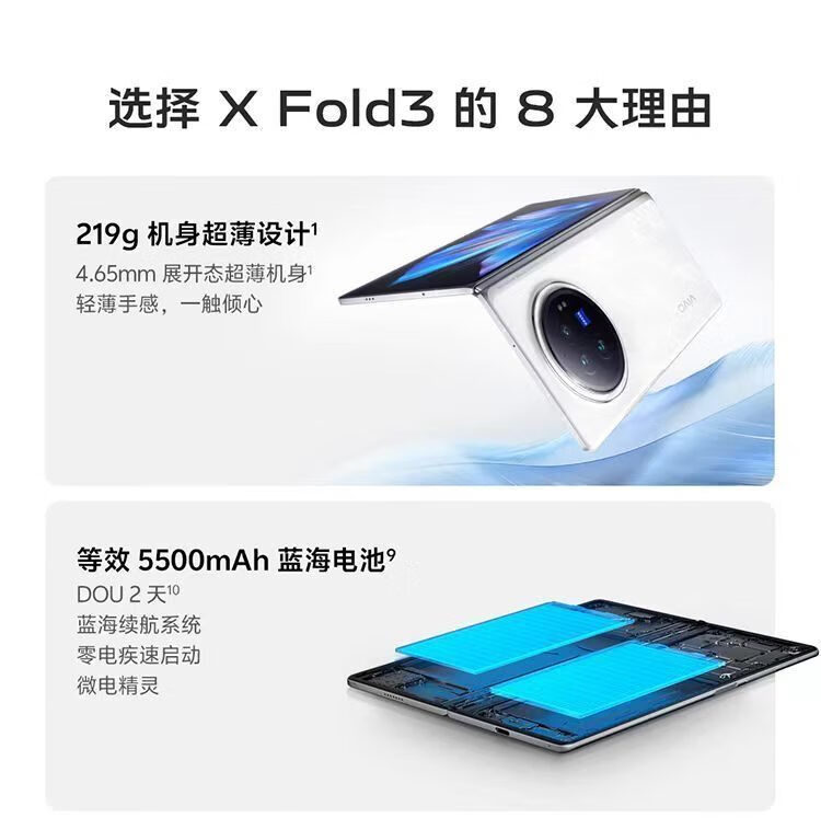 vivoX Fold3系列 Fold3 Pro折叠屏手机 超轻薄 5G通 X Fold3 轻羽白 16GB+512GB 单机+电子保卡已注册+店保一年
