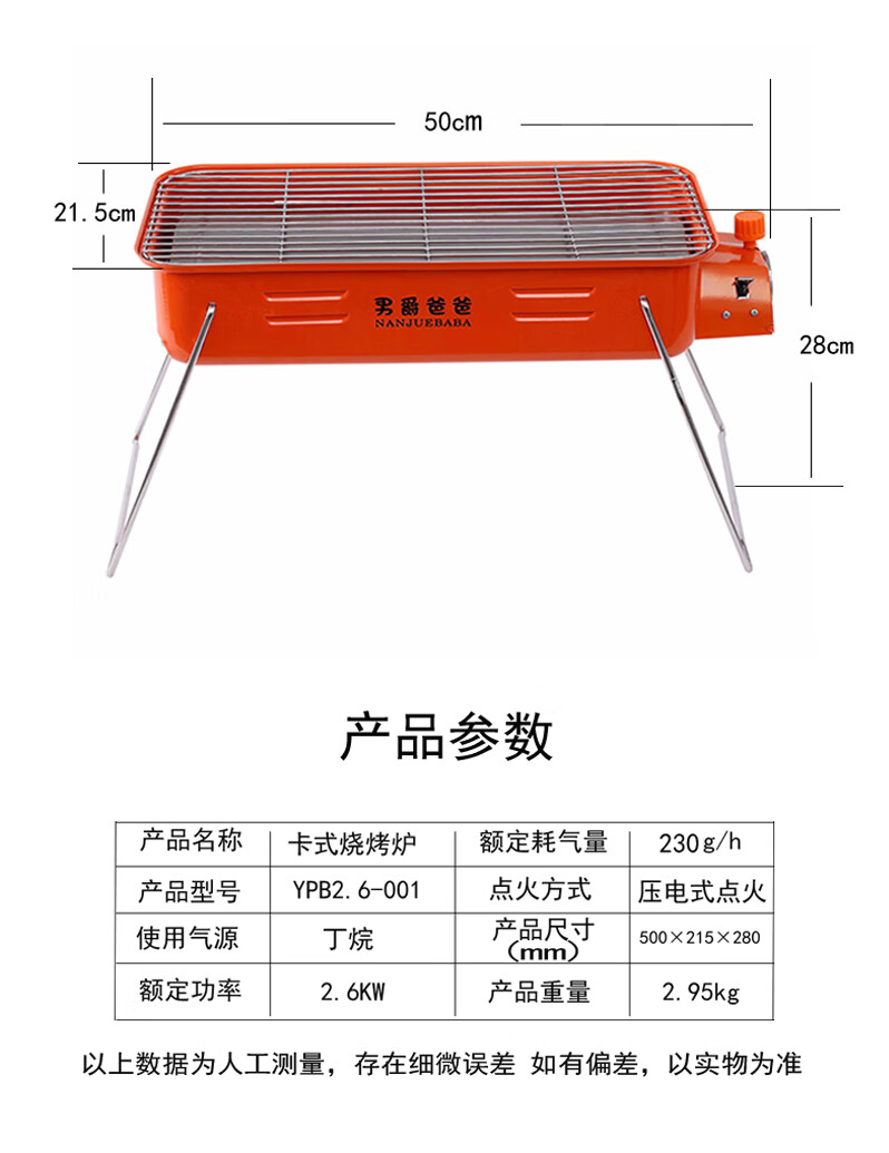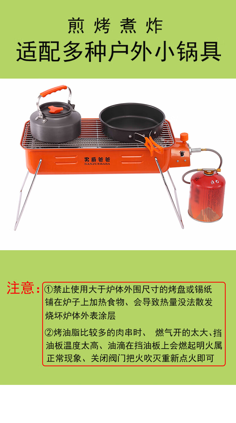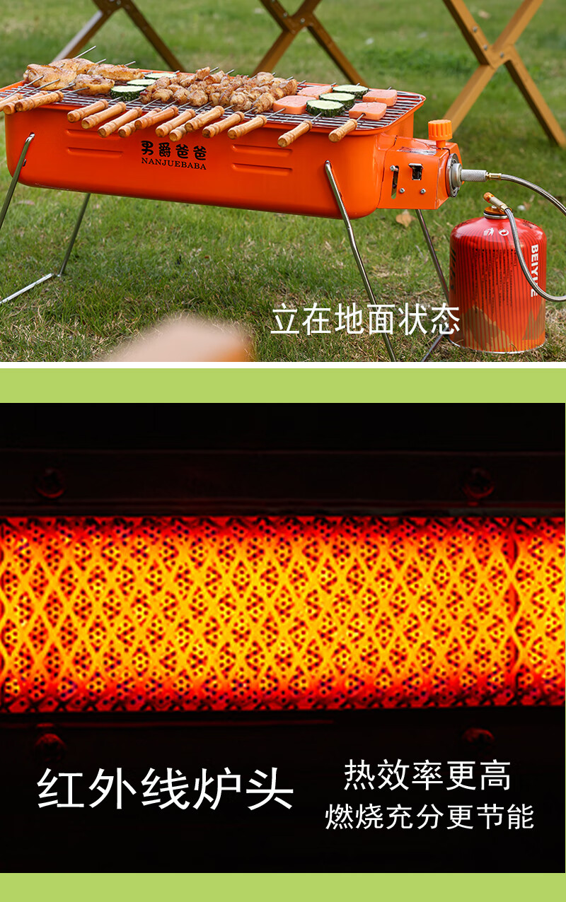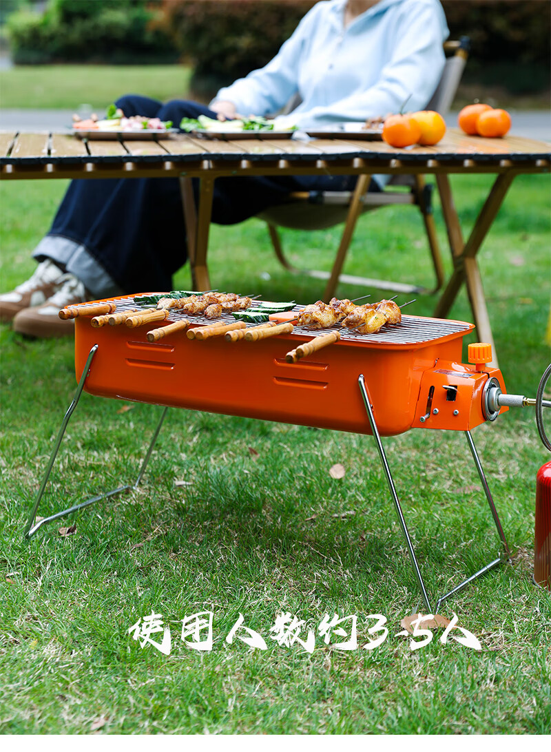 手提便携式户外网红燃气烧烤炉瓦斯炉烧烤架卡式炉红外线烤串炉子 橘红款+高山气罐转接线