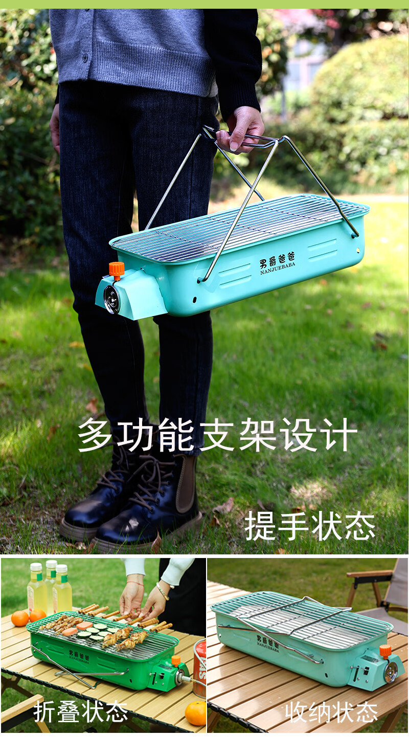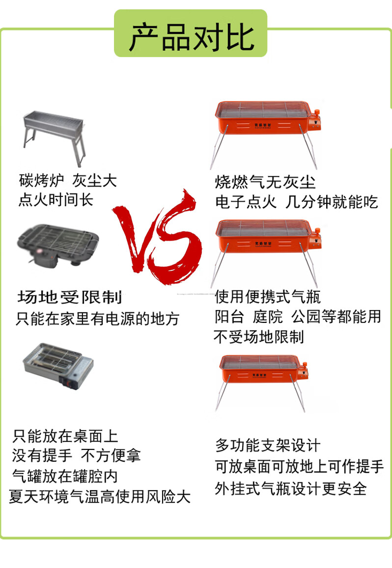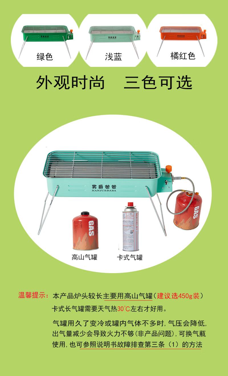 手提便携式户外网红燃气烧烤炉瓦斯炉烧烤架卡式炉红外线烤串炉子 橘红款+高山气罐转接线