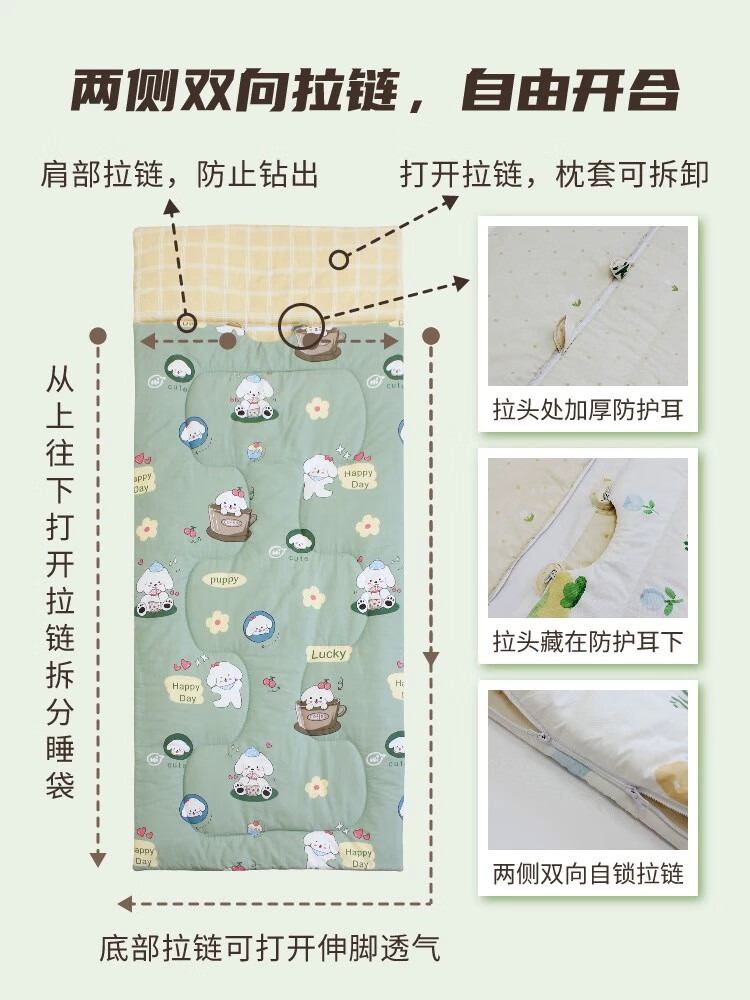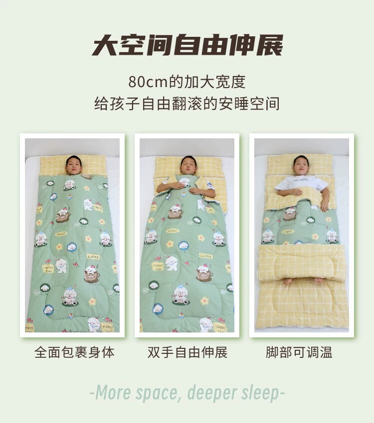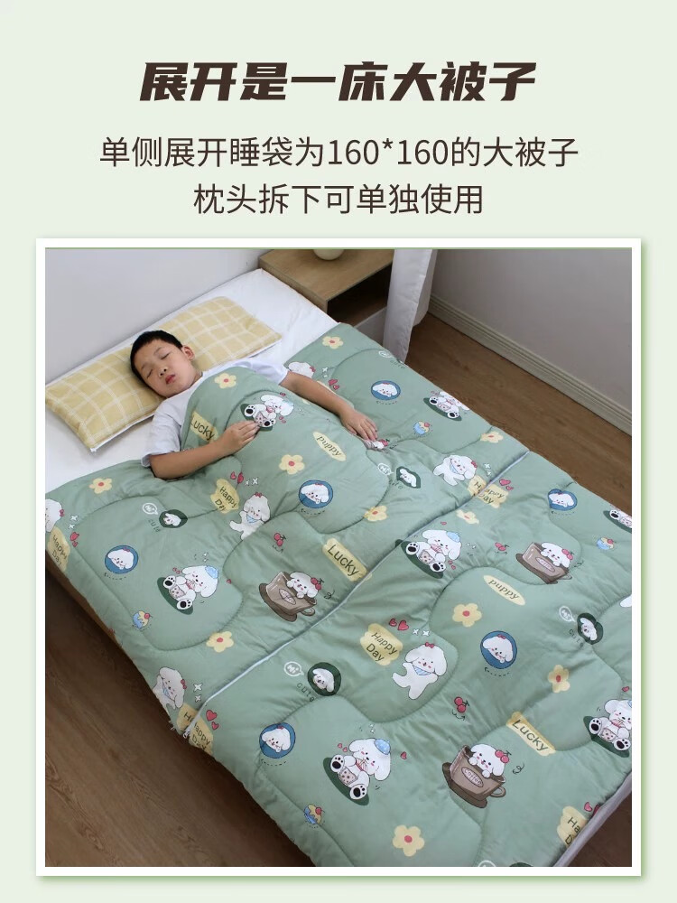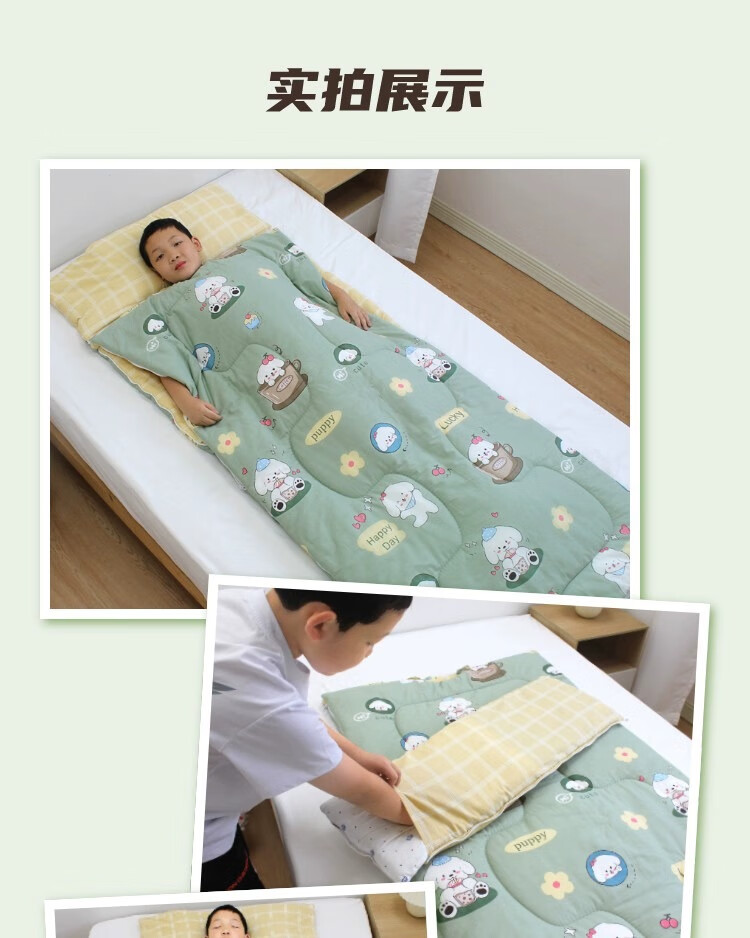 皓润琪小学生儿童午休睡袋四季通用防踢被神器男孩女孩幼儿园被子可收纳 点缀 厚款65*170