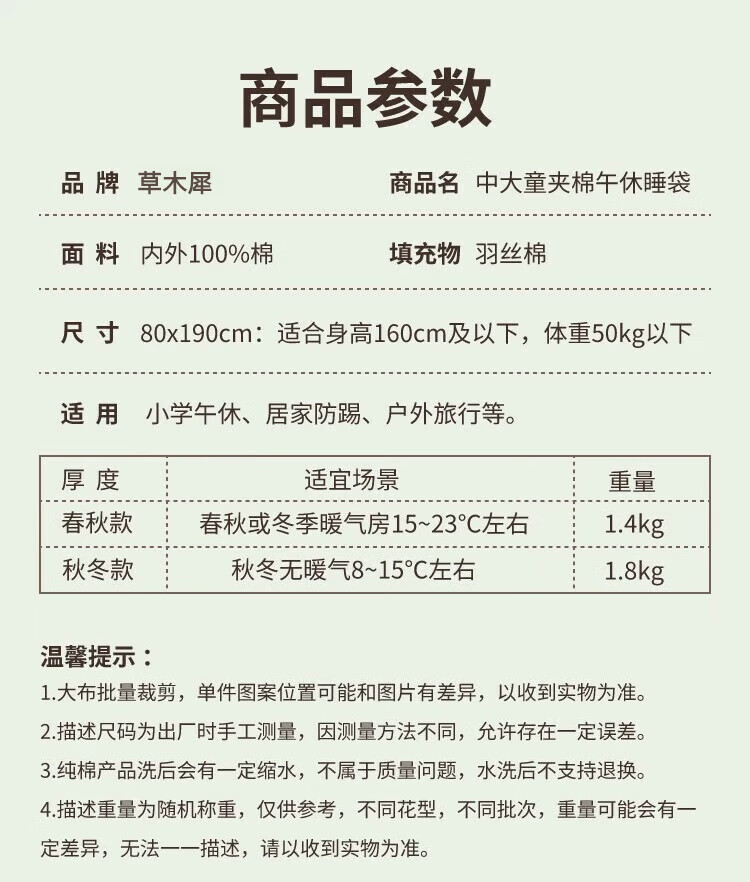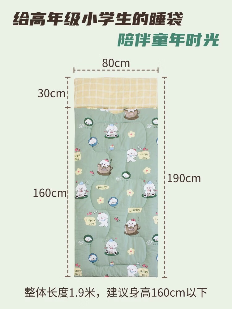 草木犀睡袋纯棉小学生午休全棉便携式春秋款保暖中大儿童午睡防踢被子 薄款80*190淘气龙