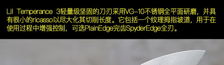 SPYDERCO美国蜘蛛 C69 日本生产LilTemperance3代轻量级户外刀 C69PBK3