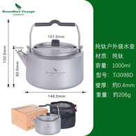 必唯(BOUNDLESS VOYAGE)纯钛钛壶烧水壶户外野营轻量便携明火电磁炉咖啡壶煮水壶露营用品 Ti3098D 1000ml 手柄可折叠