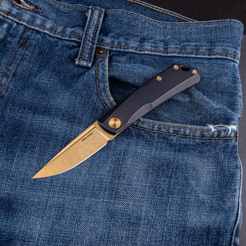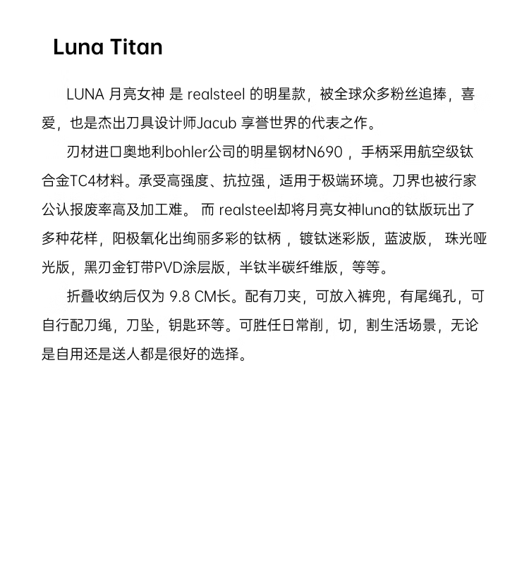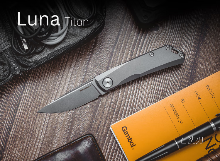 锐狮帝RealSteel Luna Titan 弧月 钛宸 EDC折刀 黑金 N690刃材 口袋刀 黑金