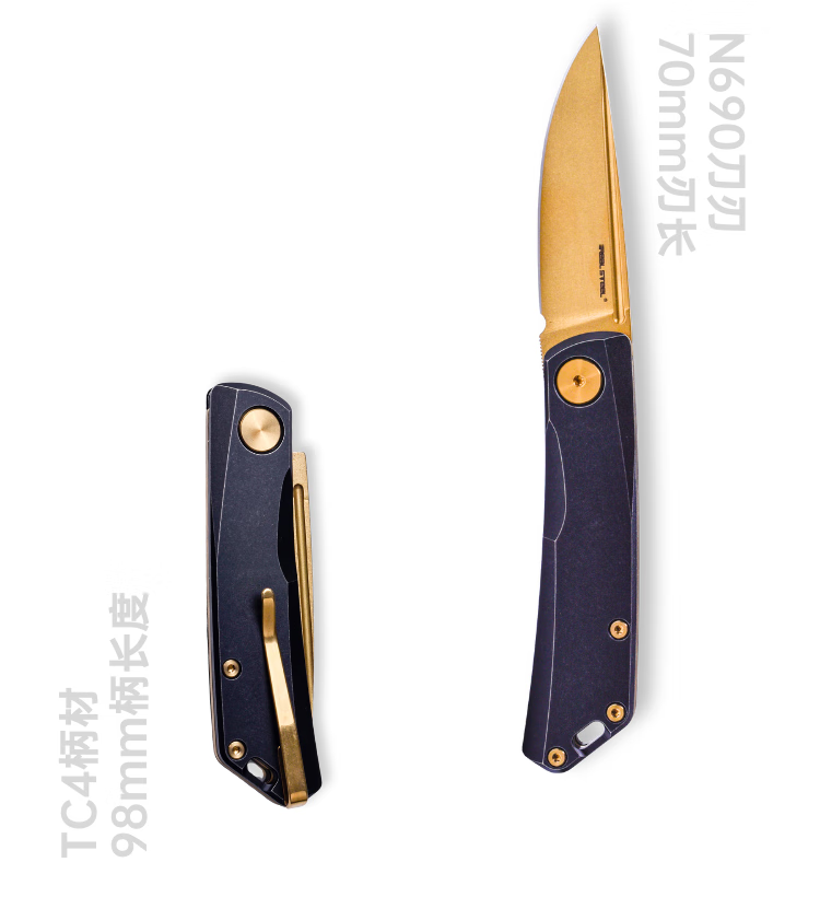 锐狮帝REALSTEEL锐狮帝N690不锈钢Luna钛柄户外轻量EDC口袋刀便携折叠刀 7001 TS-03蓝色钛金属手柄