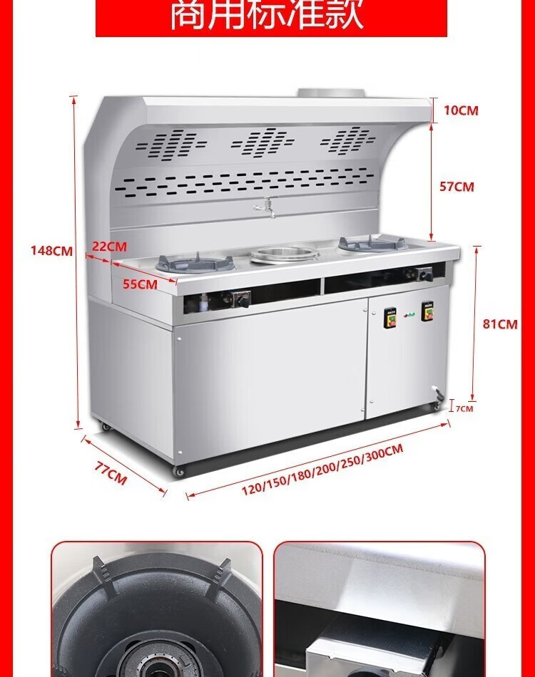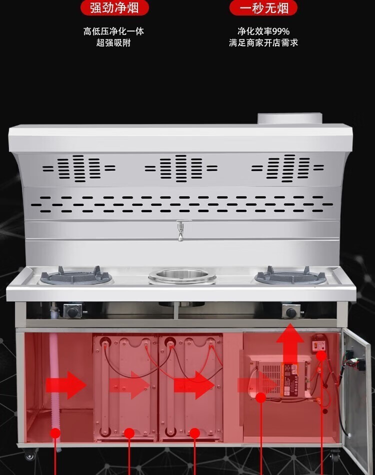 亿骁(YIXIAO)炒菜车猛火灶净化一体灶台爆炒排档高压双灶不锈钢节能油烟灶 净化灶定制款