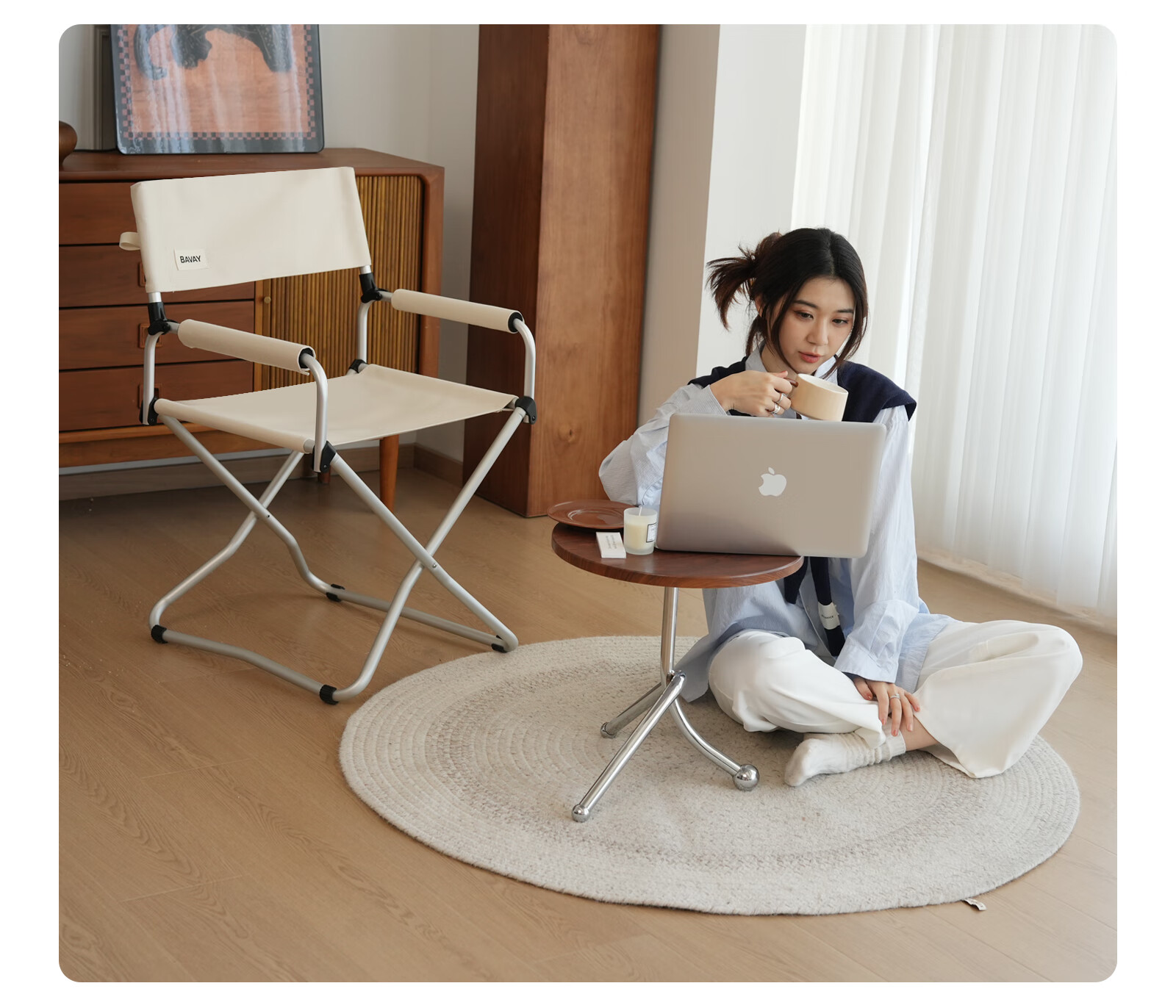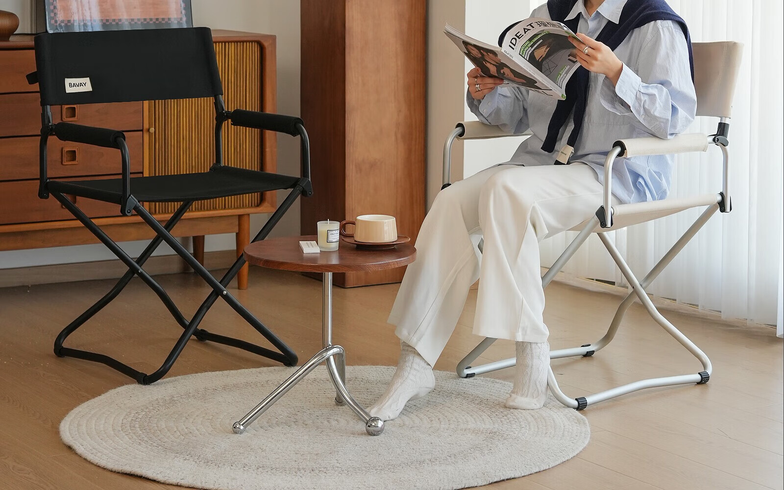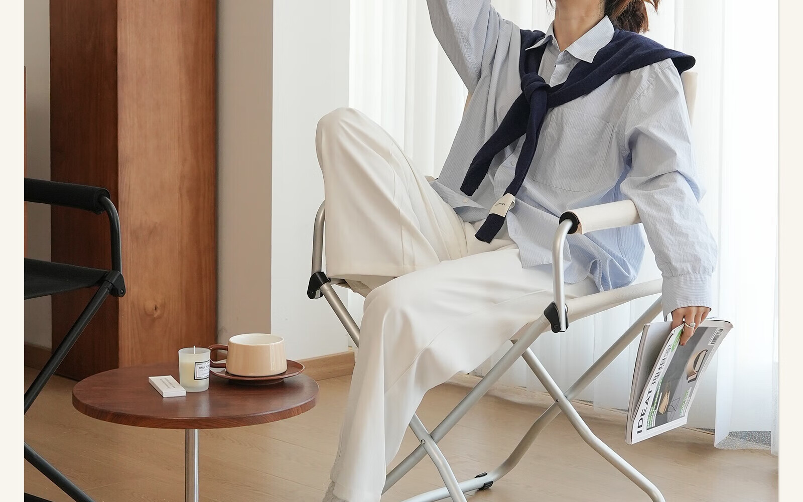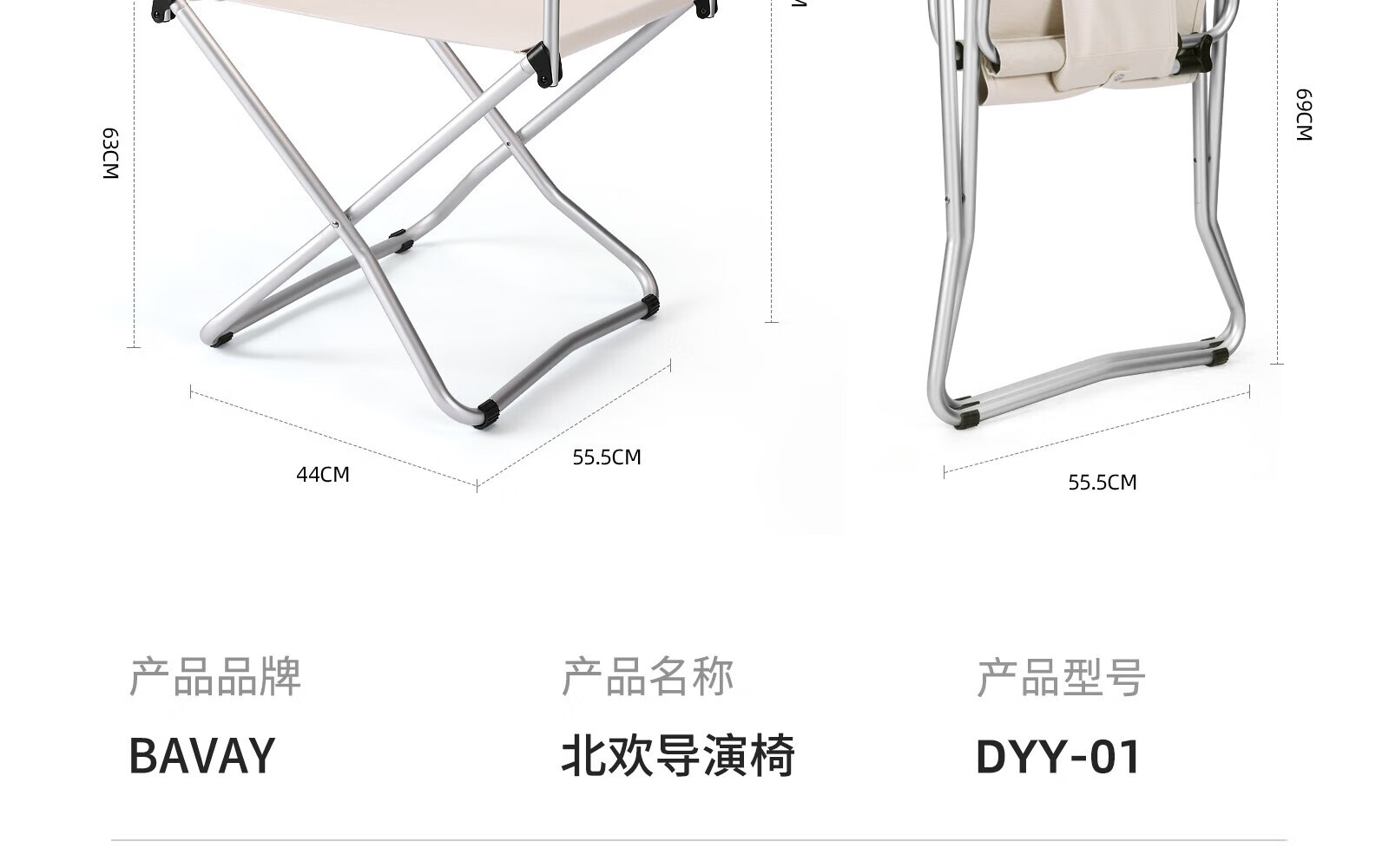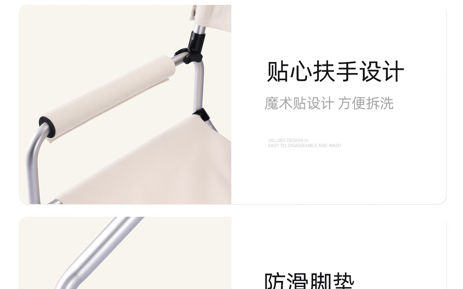 北欢户外露营便携折叠铝合金导演椅沙滩椅野营地写生靠背椅 米色-简约铝合金导演椅