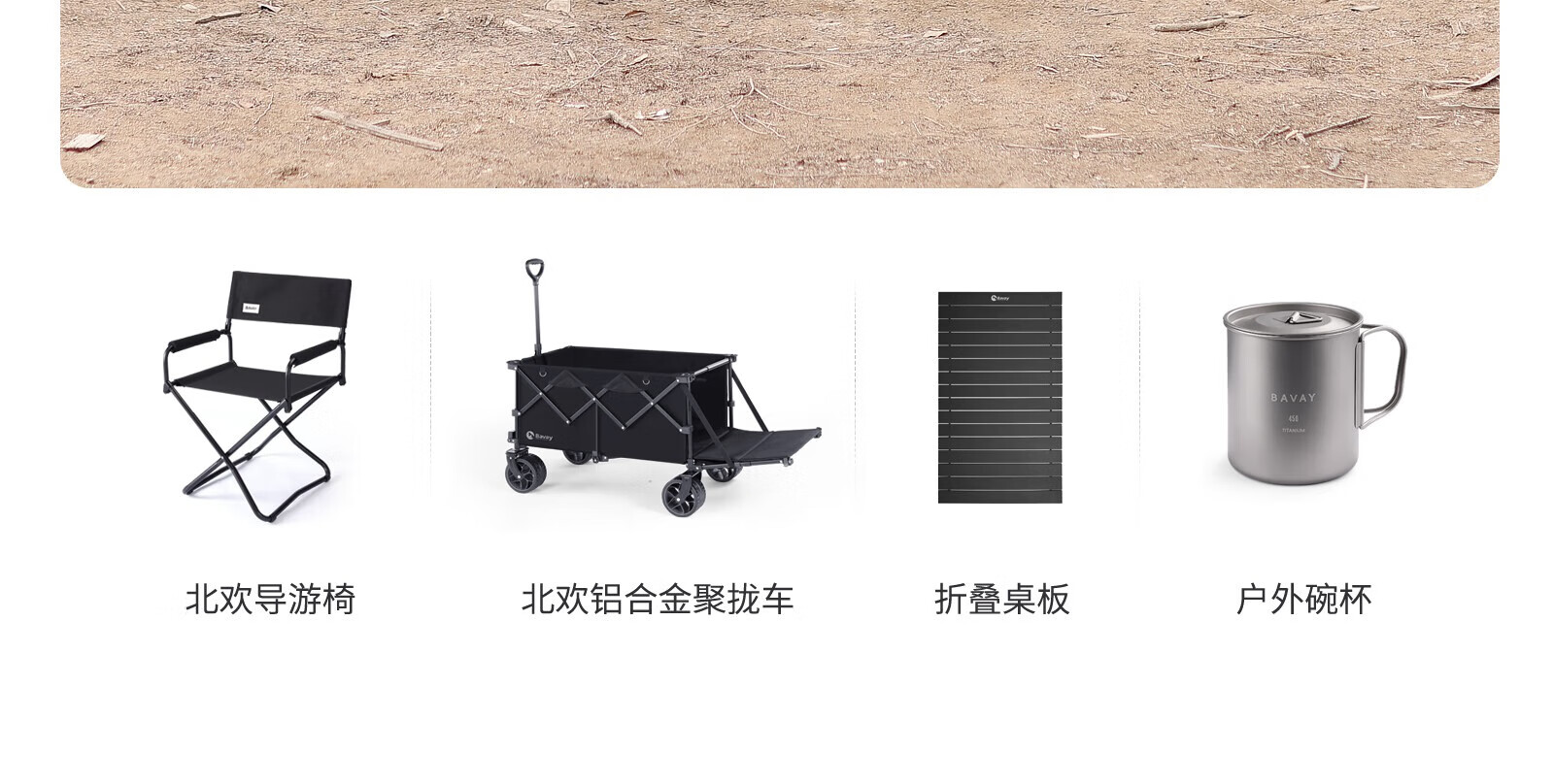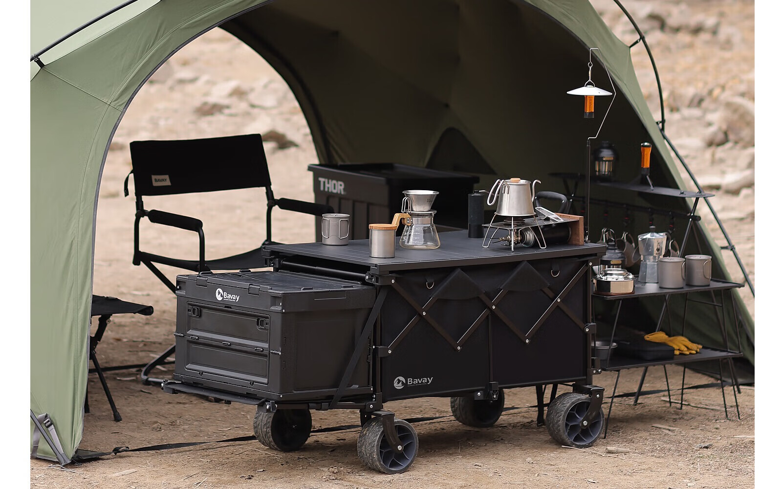 北欢bavay露营折叠推车铝合金户外营地野营聚拢拉货拖车野餐F12 420L 卡其-铝合金车架-车轮防脏袋