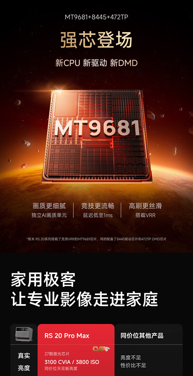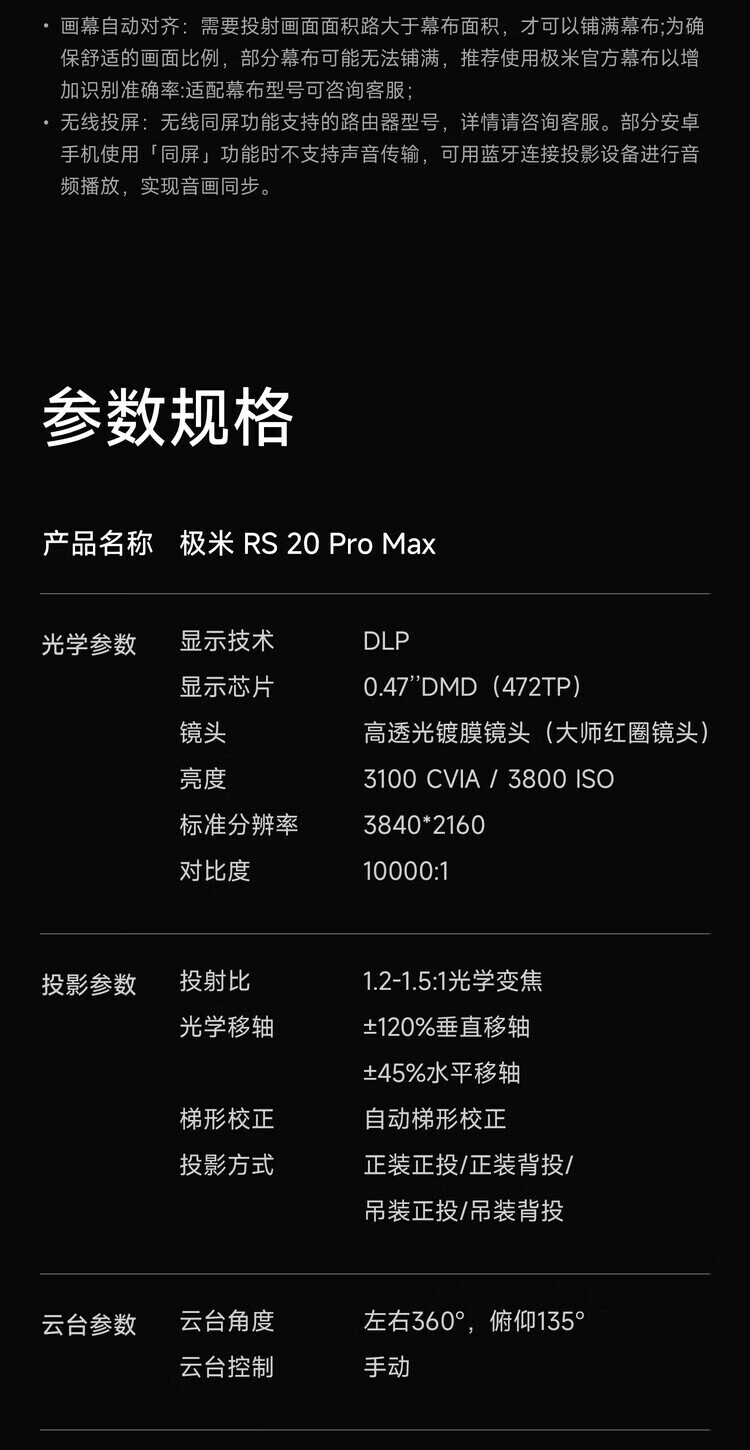 极米(XGIMI)RS 20 Pro Max 家用投影仪 全新三色激光变焦移轴高刷投影 性能卷王丨RS 20 Plus 【我是主机】