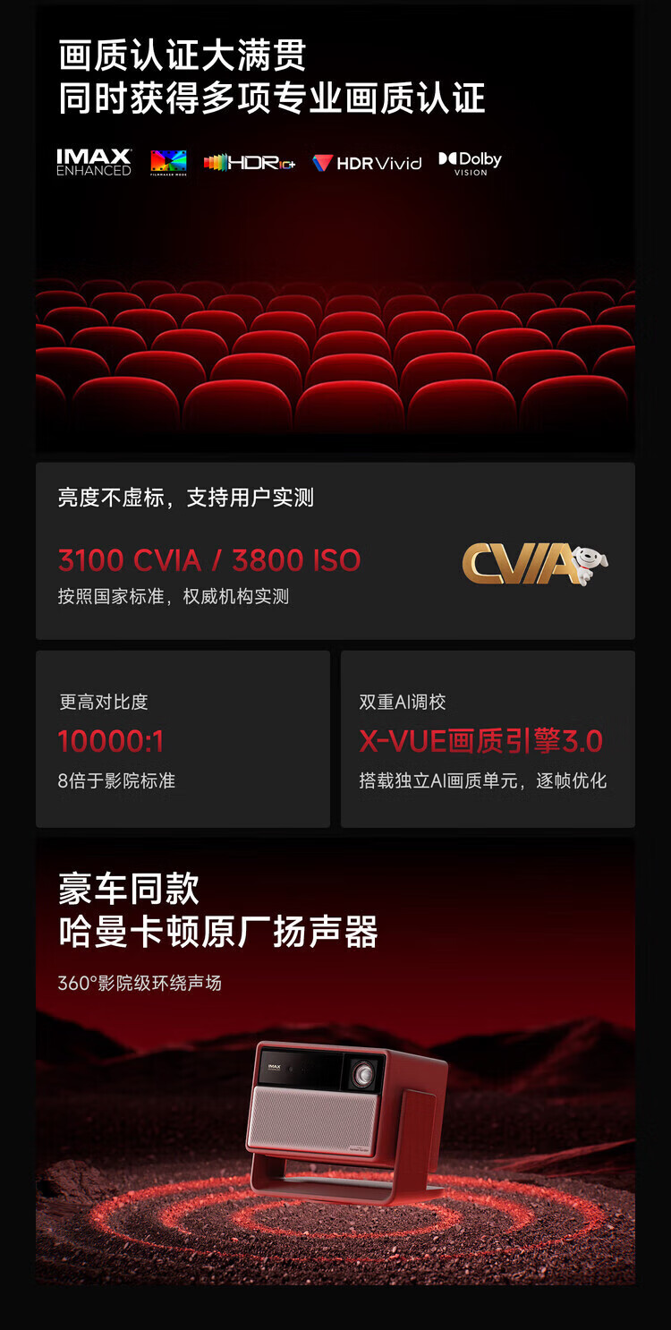 当贝X7 Ultra 4K超高清三色激光投影仪 变焦位移高刷智能投影机 国家补贴20%(超亮3800 CVIA MT9681)