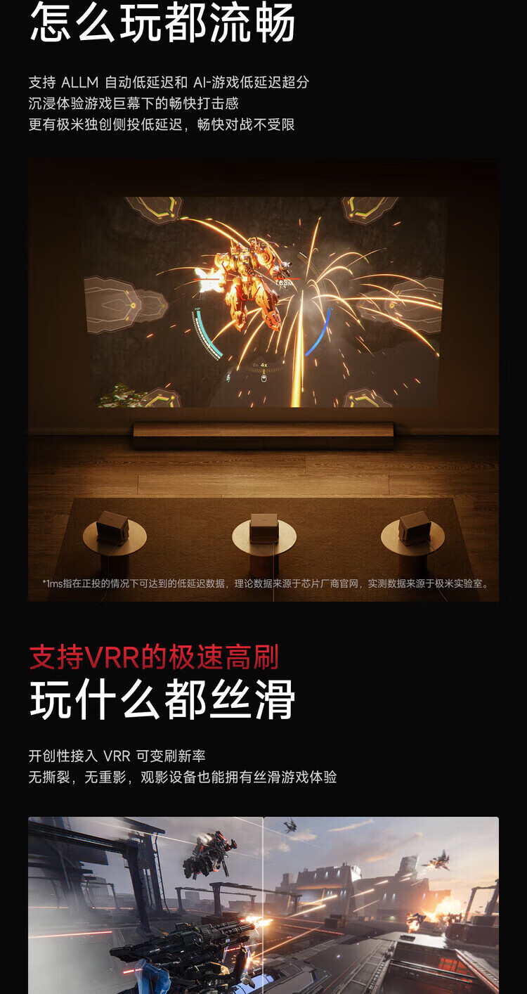 极米RS 20 Pro 高亮版《解限机》全新三色激光高刷投影仪4K家庭影院 极米RS20+高清线+100寸反光幕布