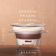 OEMG围炉煮茶炉套装器具烧烤炉碳炉子老式陶土打边炉家用室内户外庭院 大号炉+陶瓷隔片+烤网+防烫架