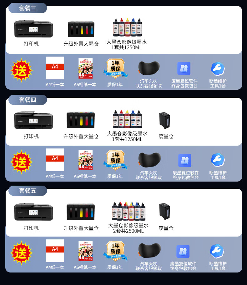 佳能(Canon)ix6880无线彩色A3喷墨专业照片打印机家用商用图文广告店不干胶皮纹封面纸铜版纸wifi 套餐六【标配+2套原装墨盒+相纸】
