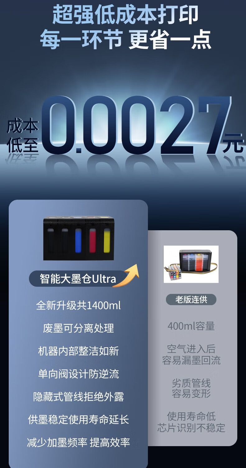爱普生(EPSON)L11058 L130喷墨四色连供办公彩色双倍黑墨图文设计商用墨仓式高速打印海报L1300升级款 L11058黑色升级款【A3+图文设计高速打印】