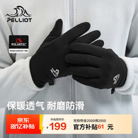 伯希和(Pelliot)户外骑行手套男秋冬季抓绒登山御寒保暖五指手套女105431003黑XL