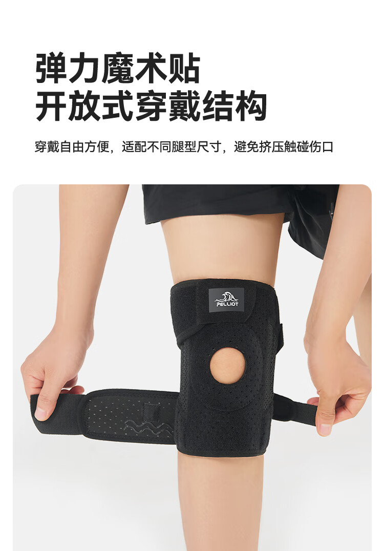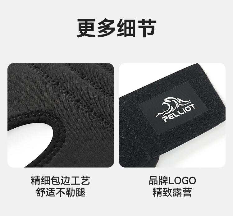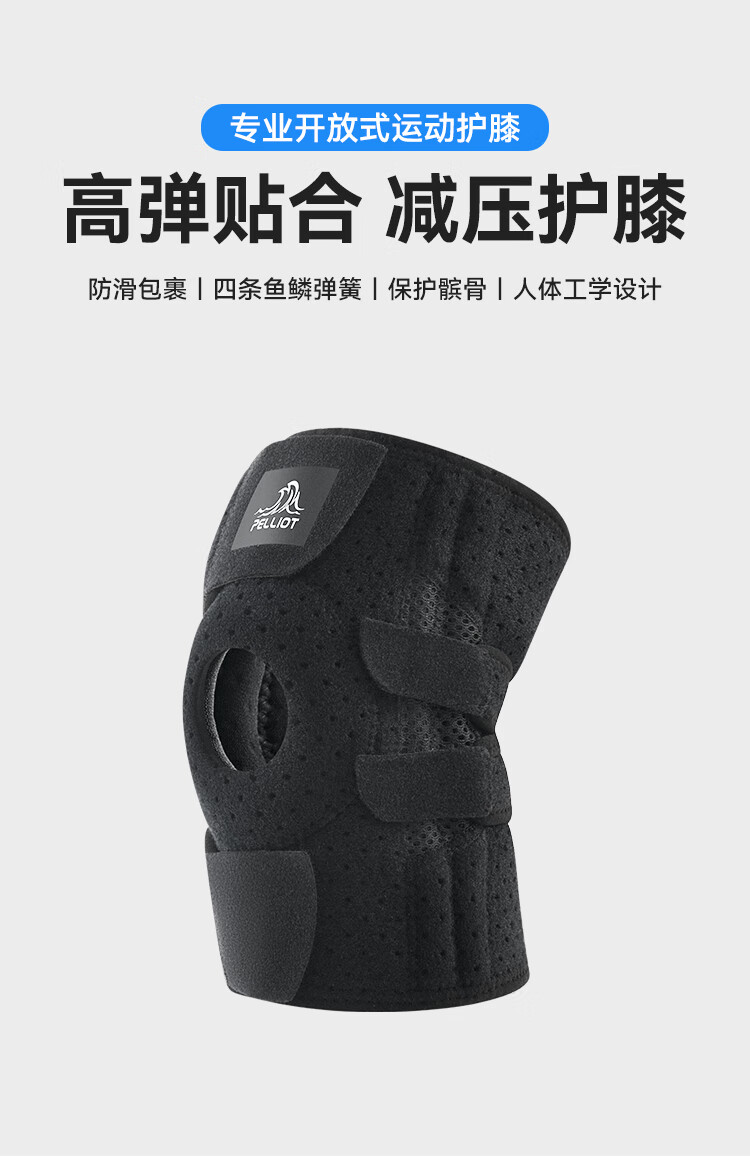 伯希和户外护膝男女徒步登山专业护具髌骨保护膝盖爬山运动装备 【高弹贴合 稳走髌骨】曜石黑 2只装
