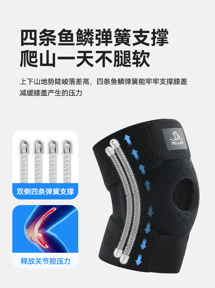 这款护膝简直是登山救星!3D立体剪裁完美贴合膝盖,加压支撑超稳还不勒。德国进口EVA材质轻盈透气,长时间佩戴也不闷汗。双侧弹簧条+髌骨硅胶垫设计,下坡时减震缓冲效果一流!防滑条纹完全不会移位,春夏秋三季都能用,已回购给全家配齐!