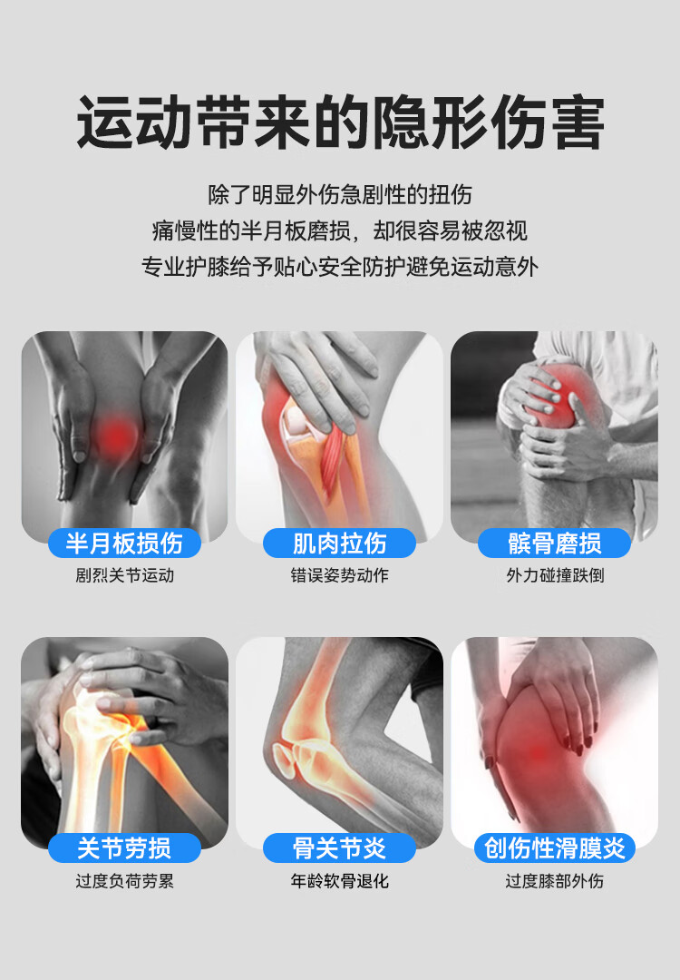防护性能优越:核心部位采用特殊加厚设计,能精准贴合髌骨与膝盖关键部位,有效分散运动时膝盖承受的冲击力,减轻膝盖负担,降低受伤风险。无论是登山时应对地形变化,还是跑步时减少膝盖磨损,都能发挥良好的防护作用。